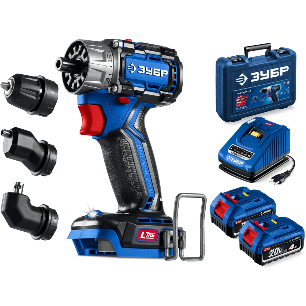Бесщеточная дрель-шуруповерт ЗУБР Профессионал Компакт Комби, 20 В, 50 Н·м, 2 АКБ LMS (4 А·ч), кейс DB-50-42-H3