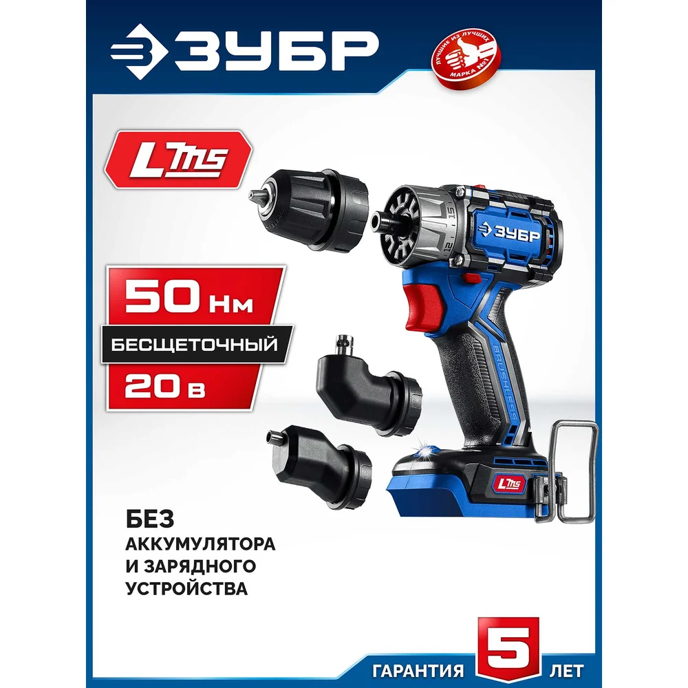 Купить Бесщеточная дрель-шуруповерт ЗУБР Профессионал Компакт Комби, 20 В, 50 Н·м, без АКБ (LMS), DB-50-H3 по лучшей цене с доставкой - интернет магазин №1 в России
