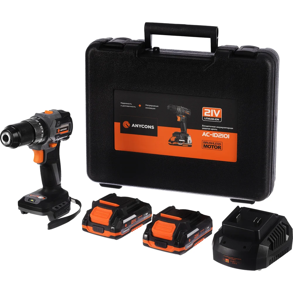 Купить Бесщеточная ударная дрель-шуруповерт Anycons 50Нм, 21В, 2 акб, AC-D21012 AC-ID2101 по лучшей цене с доставкой - интернет магазин №1 в России