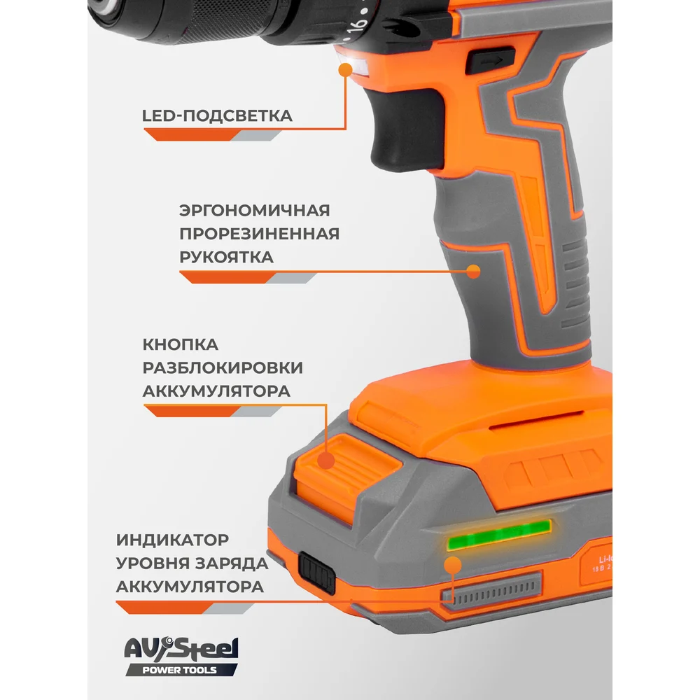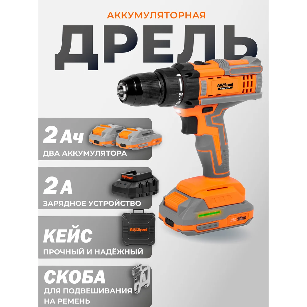 Купить Дрель аккумуляторная AV Steel AV-CD 18/45 (2x2Ah) AV-961300 по лучшей цене с доставкой - интернет магазин №1 в России