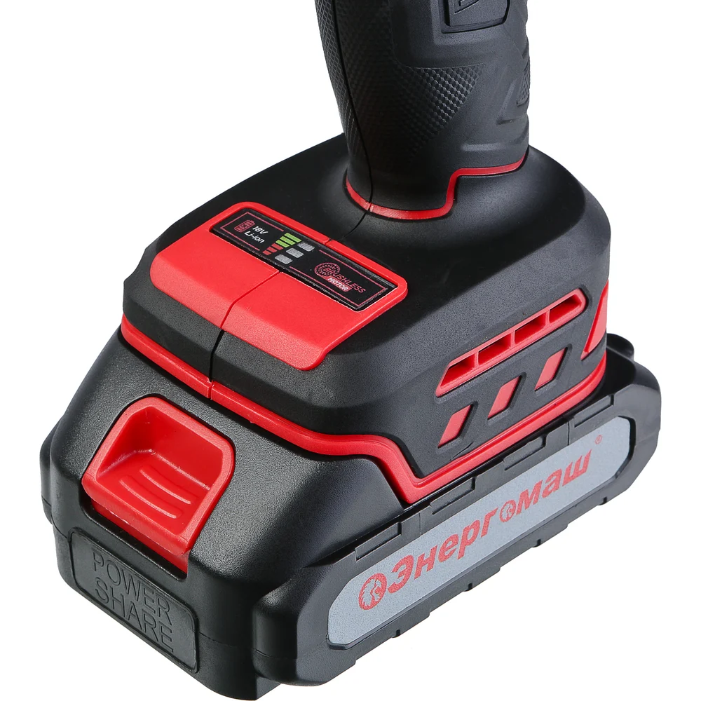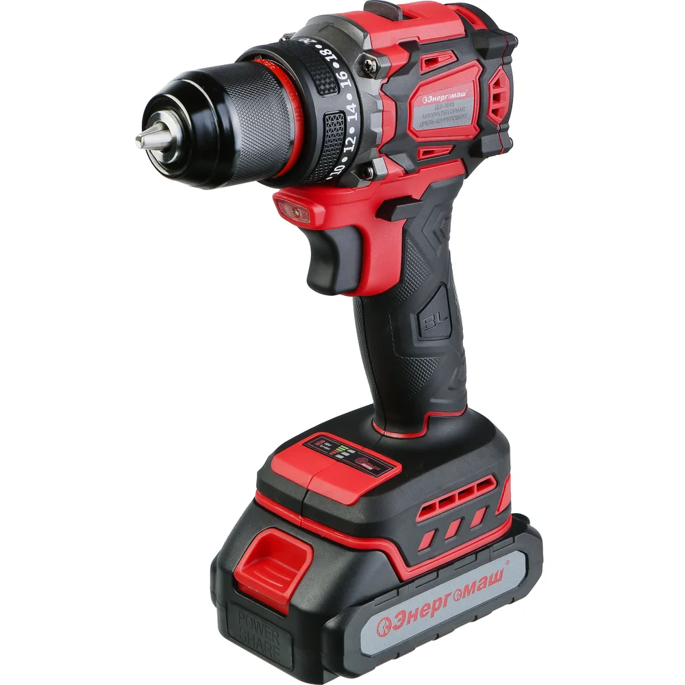 Купить Дрель аккумуляторная бесщеточная Энергомаш 18В, 45Нм, 2x2.0Ач, ЗУ, кейс ДШ-1845 по лучшей цене с доставкой - интернет магазин №1 в России
