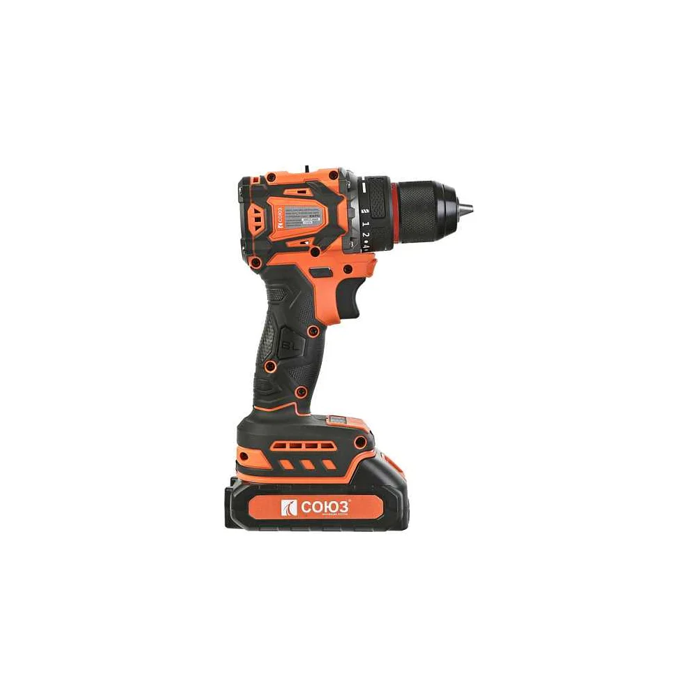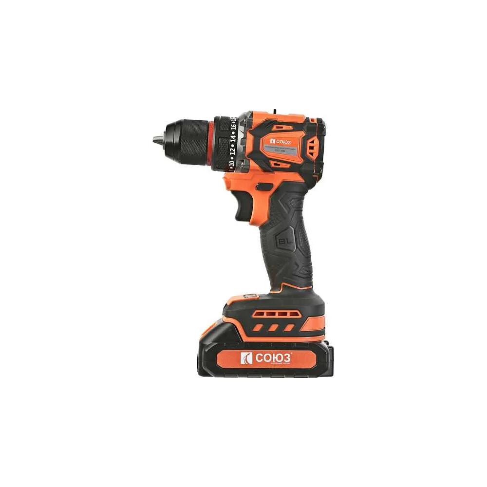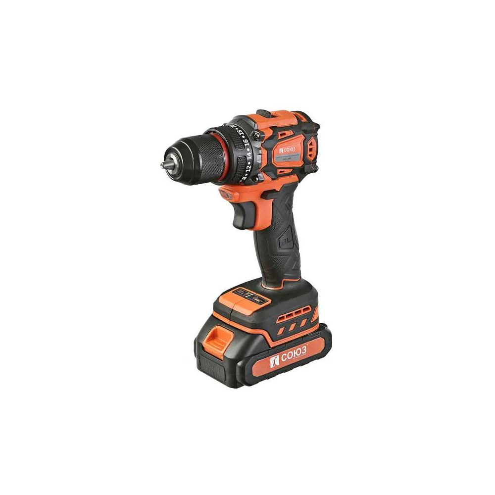Купить Дрель аккумуляторная бесщеточная Союз, 18В, 45Нм, 2x2.0Ач, ЗУ, кейс ДШС-1845 по лучшей цене с доставкой - интернет магазин №1 в России