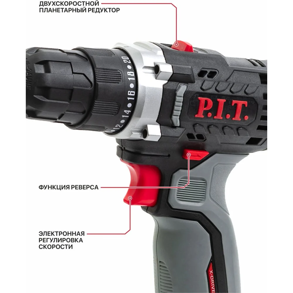 Купить Дрель аккумуляторная P.I.T. X-DRIVER SOLO 12В, 22Нм, 10 мм, 2ск, 0-350/1350 об/мин, коробка PBM12K-10A по лучшей цене с доставкой - интернет магазин №1 в России
