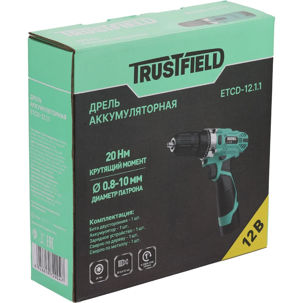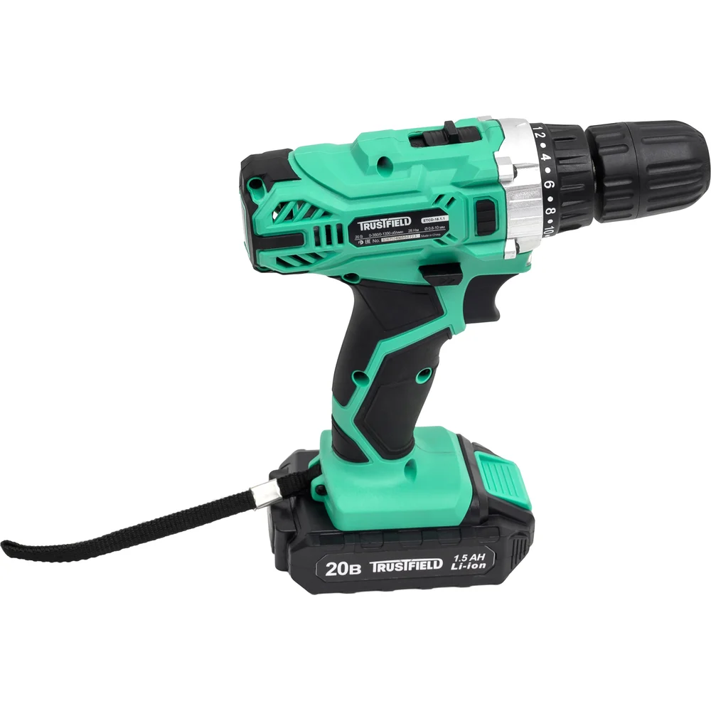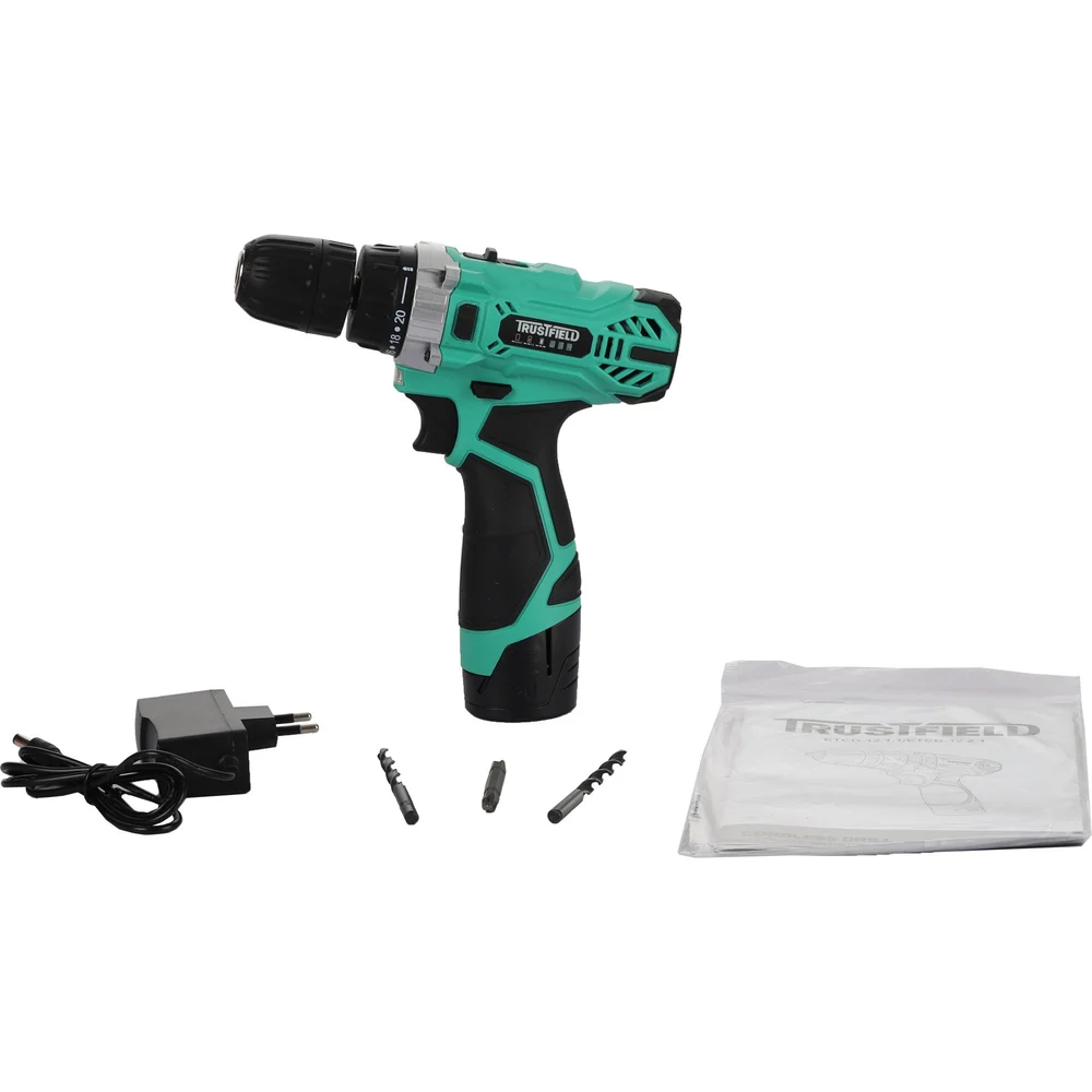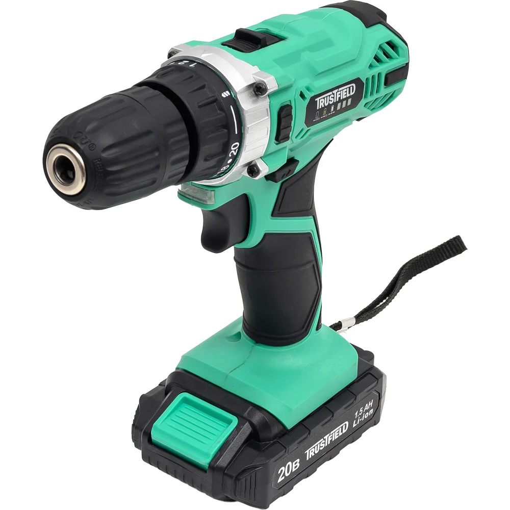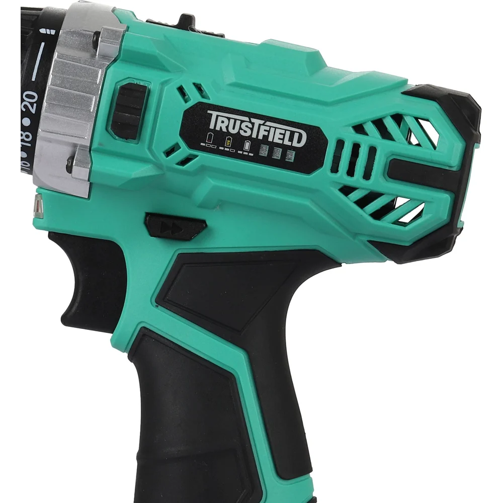 Купить Дрель аккумуляторная TRUSTFIELD 20В, 28Нм, БЗП 10мм, 2 ск., 0-350/0-1350об/мин, 2 акб 1.5Ач,ЗУ ETCD-18.2.1 по лучшей цене с доставкой - интернет магазин №1 в России