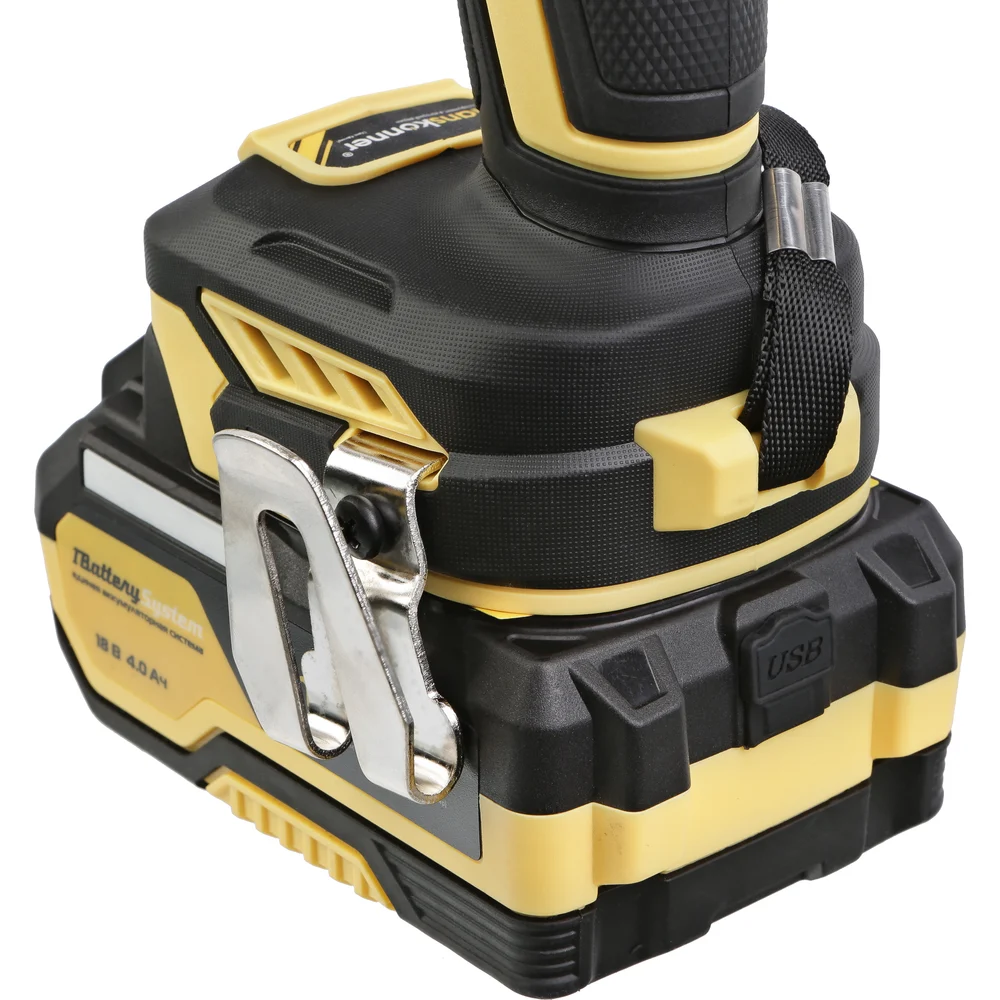 Комплектация Аккумуляторная дрель-шуруповерт (1 шт.); Зарядное устройство (1 шт.); биты (1 шт.); Аккумуляторная батарея (1 шт.); Скоба (1 шт.); Фиксирующий винт (1 шт.); USB LED-фонарик (1 шт.); Инструкция по безопасности; Инструкция по эксплуатации