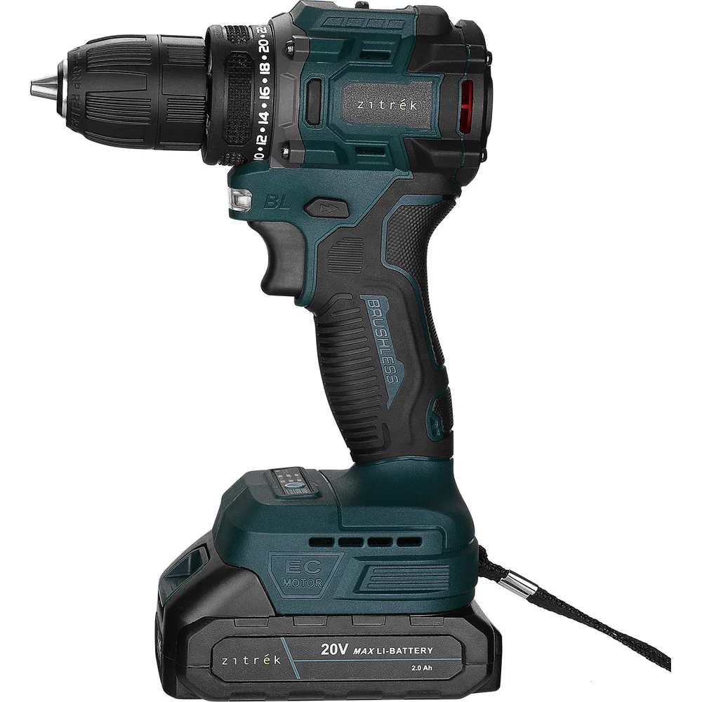 Дрель-шуруповерт аккумуляторная бесщеточная Zitrek Greenpower 20 PRO в кейсе, 20В, 2x2.0Ач 085-1314