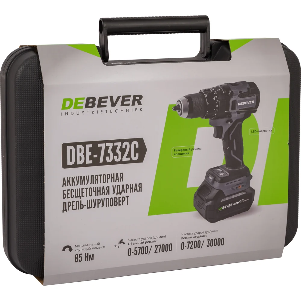Купить Дрель-шуруповерт аккумуляторная Debever бесщеточная, 85Nm, 20+3, 13мм, 20В; в компл. АКБ 2,0 а/ч; з/у 4,0 а/ч DBE-7332CKIT по лучшей цене с доставкой - интернет магазин №1 в России