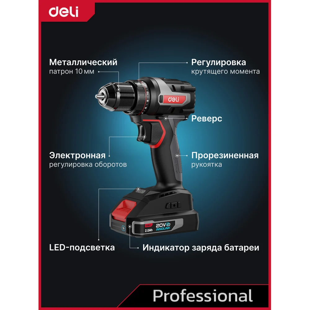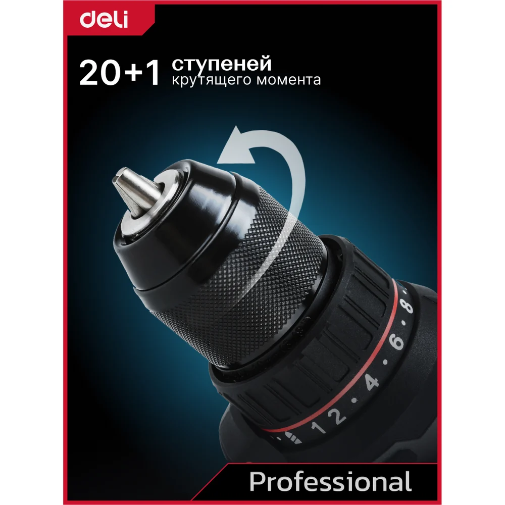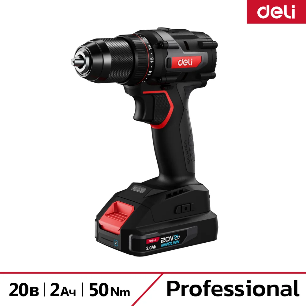 Купить Дрель-шуруповерт аккумуляторная DELI DE-DZ20-1D2 (2 акб, 20В х 2Ач, ЗУ, патрон 10мм, 50Нм, сумка) 164326 по лучшей цене с доставкой - интернет магазин №1 в России