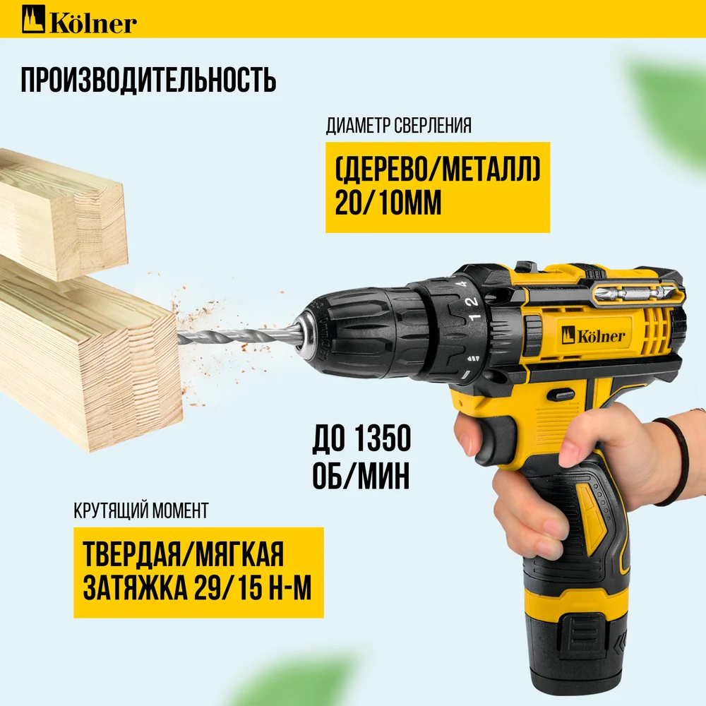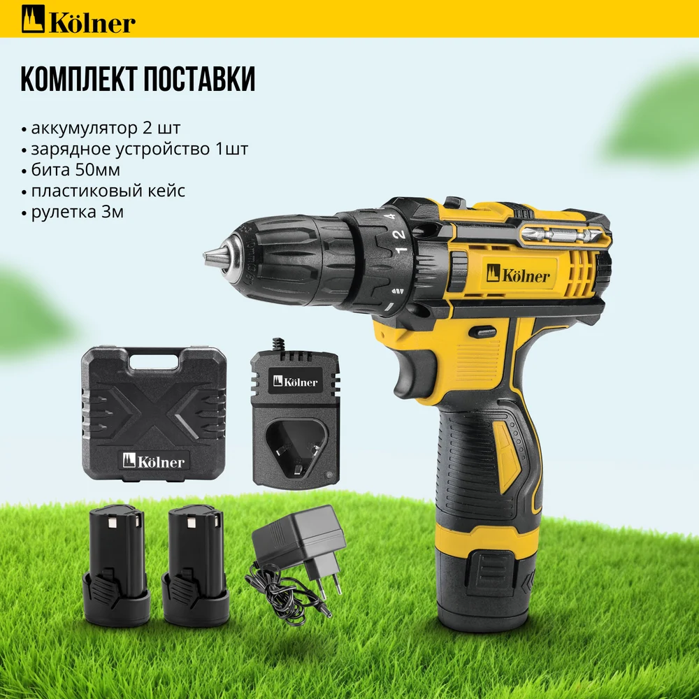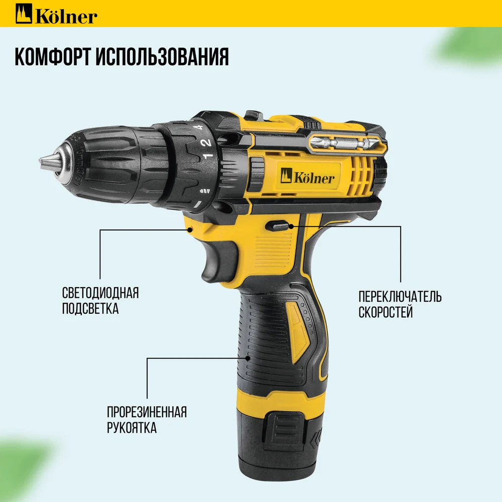 Купить Дрель-шуруповерт аккумуляторная Kolner 12В, 29 Нм, KCD 12/2C, БЗП 0,8-10 мм, 0-350/1350 об/мин, 2 скорости, подсветка 8020100573 по лучшей цене с доставкой - интернет магазин №1 в России