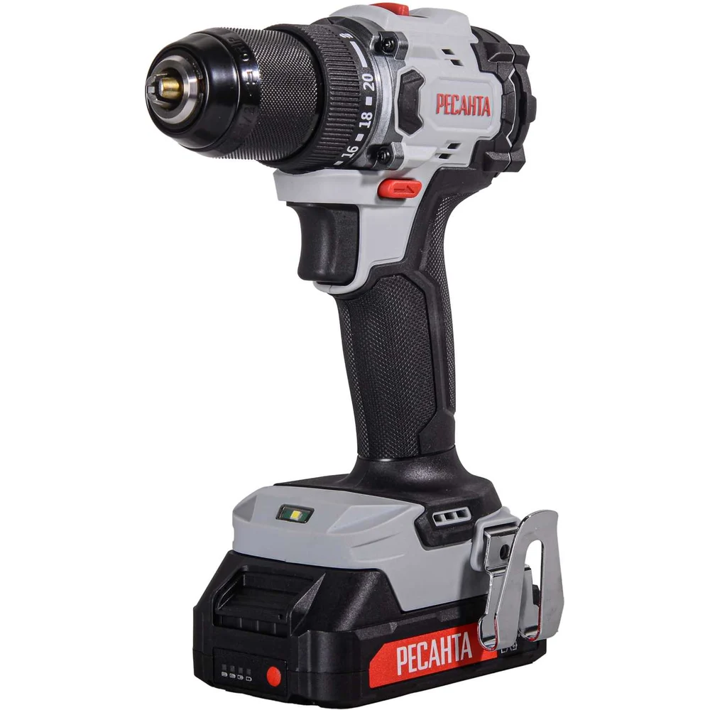 Купить Дрель-шуруповерт аккумуляторная Ресанта ДА-20-2ЛК-БП (2,0 А/ч) (бесщеточный двигатель, 70Нм) 75/14/15 по лучшей цене с доставкой - интернет магазин №1 в России