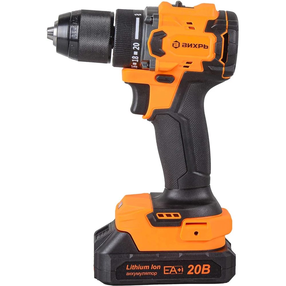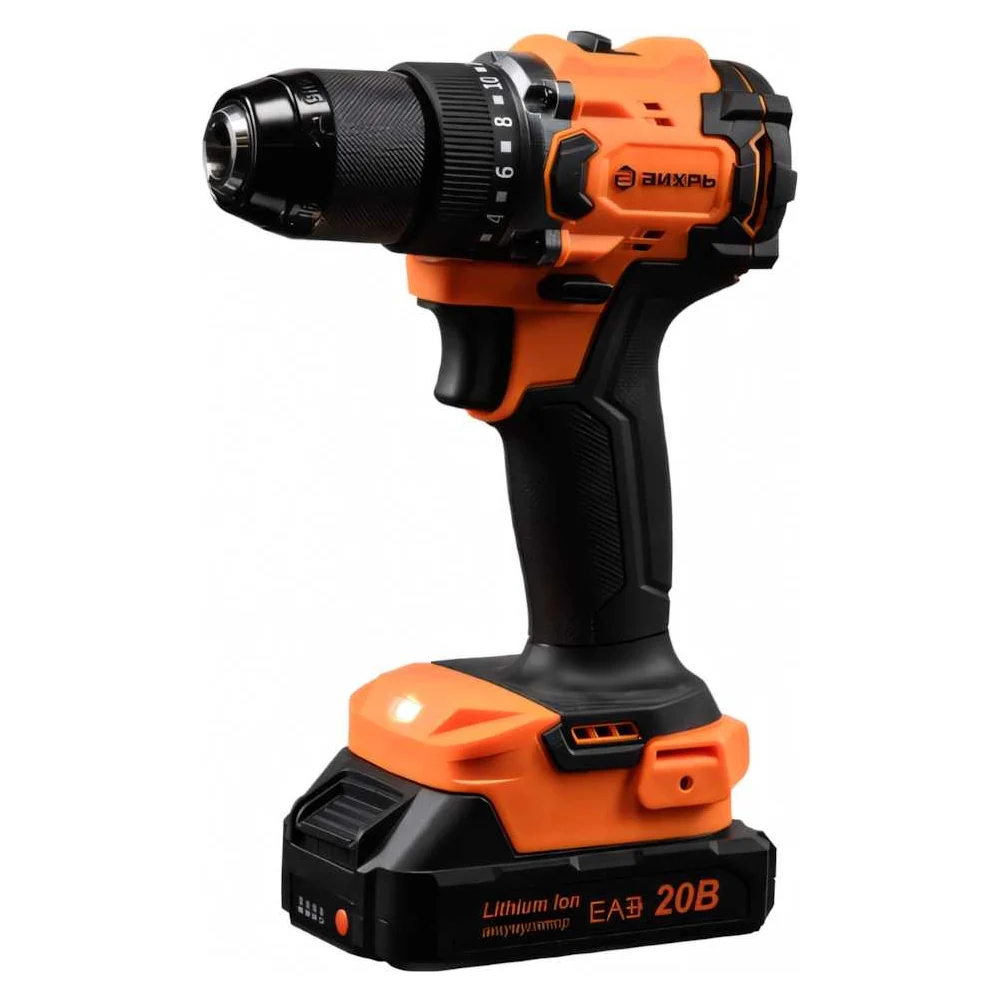Купить Дрель-шуруповерт аккумуляторная Вихрь ДА-20Л-2К/БП 2,0 А/ч, бесщеточный двигатель, 70Нм 72/14/67 по лучшей цене с доставкой - интернет магазин №1 в России