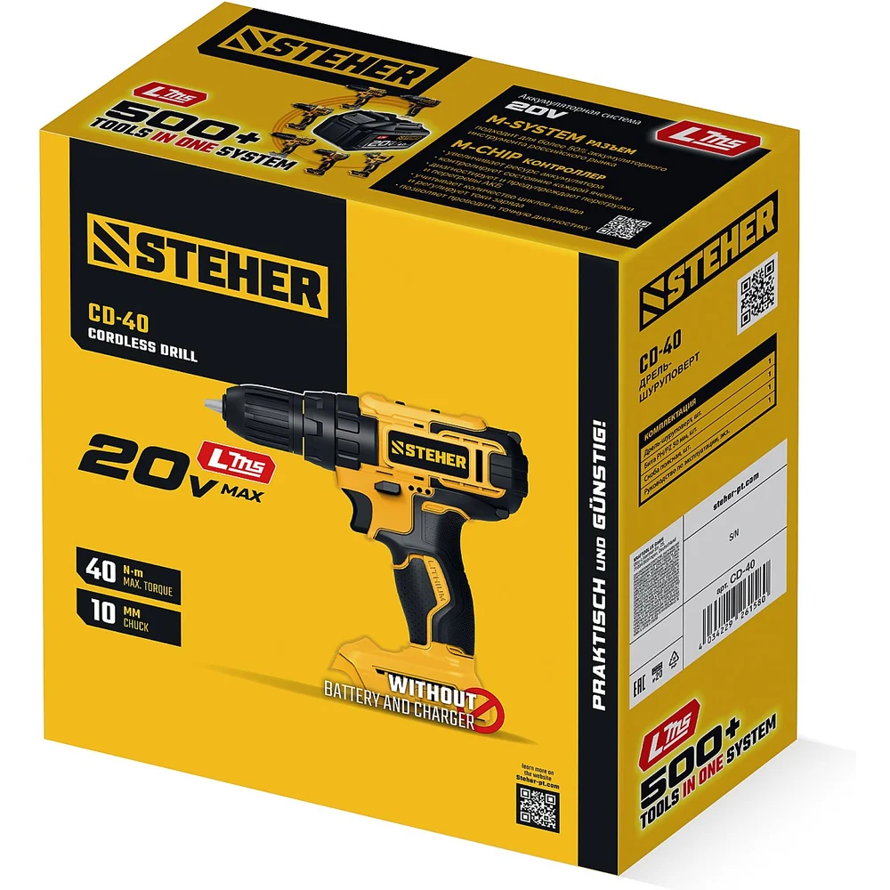 Купить Дрель-шуруповерт STEHER 20 В, 40 Н·м, без АКБ (LMS), CD-40 по лучшей цене с доставкой - интернет магазин №1 в России