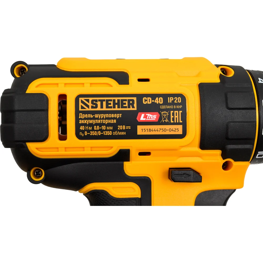 Дрель-шуруповерт STEHER 20 В, 40 Н·м, без АКБ (LMS), CD-40