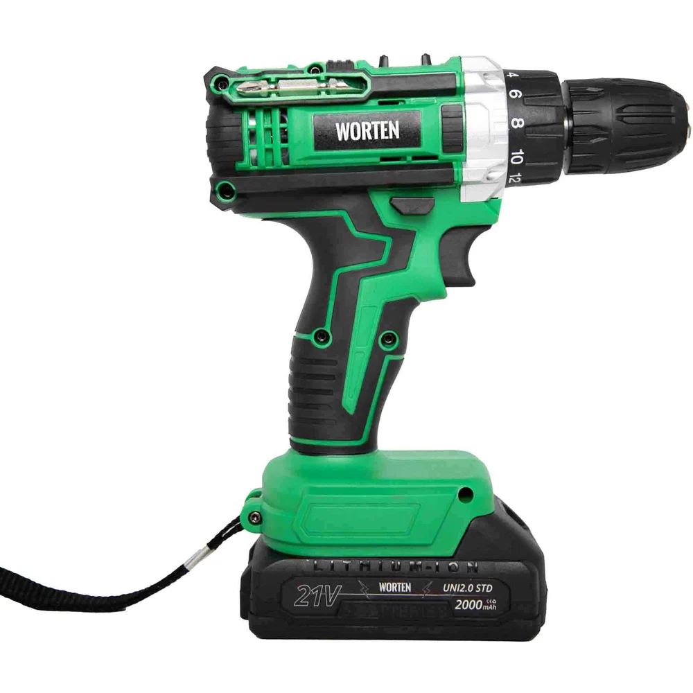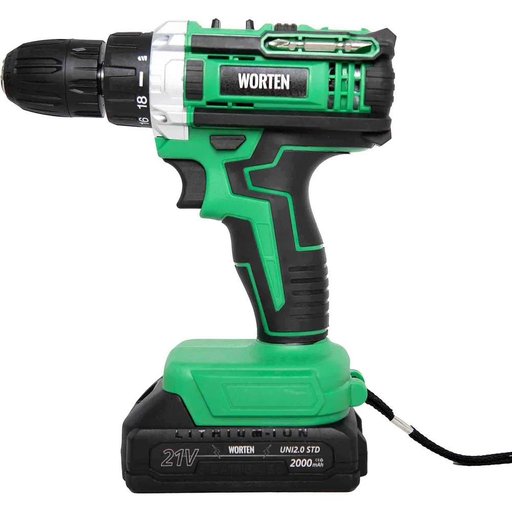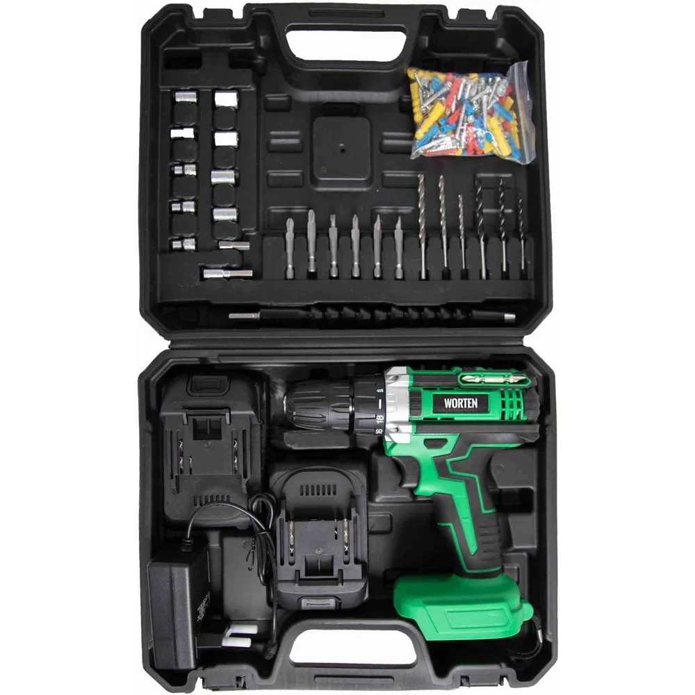Дрель-шуруповерт WORTEN 2x2.0Ач, 21В, с набором 63 инструмента IM КА-90000574