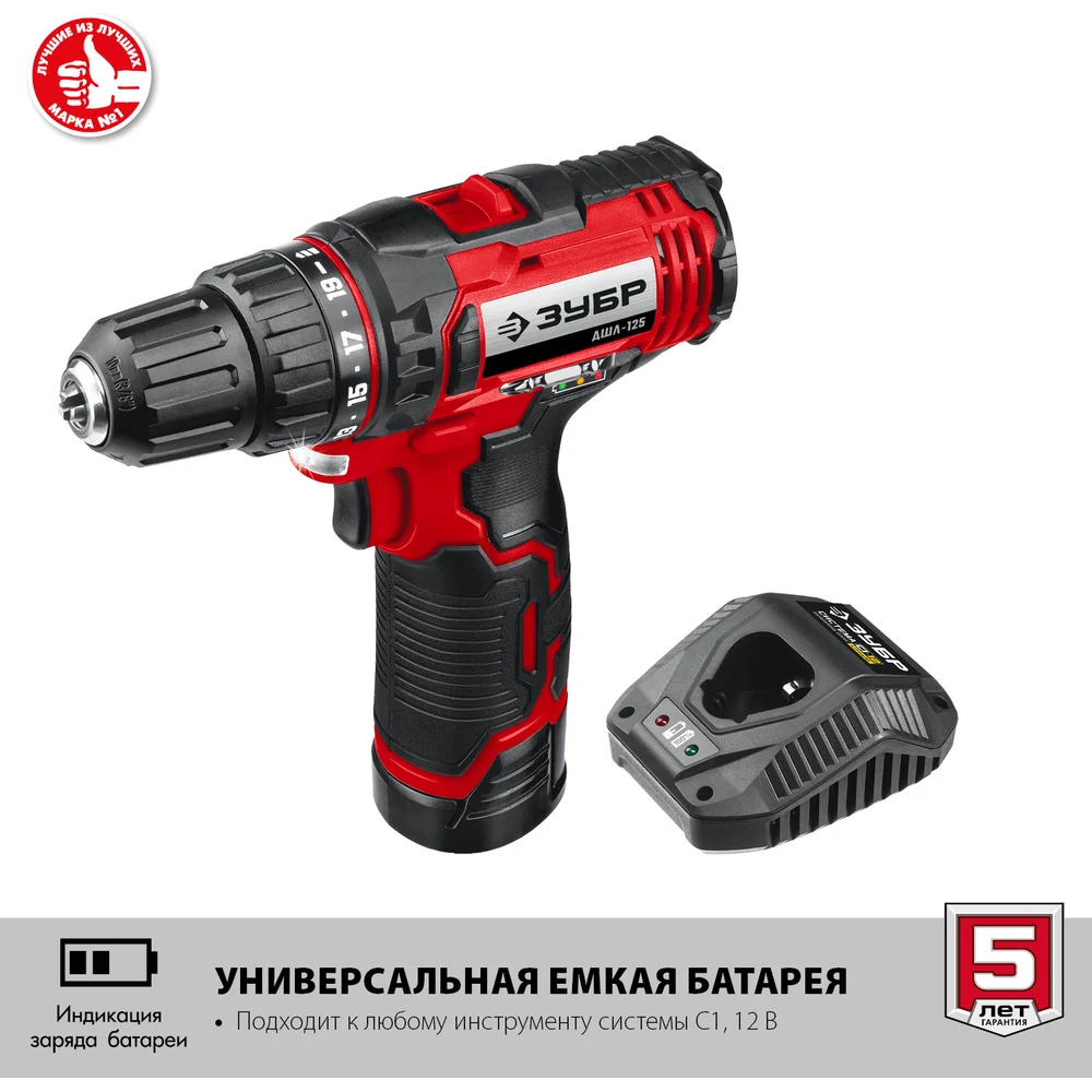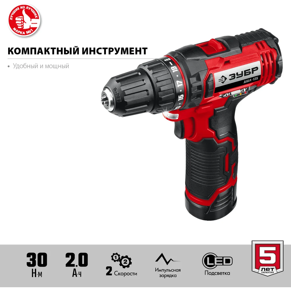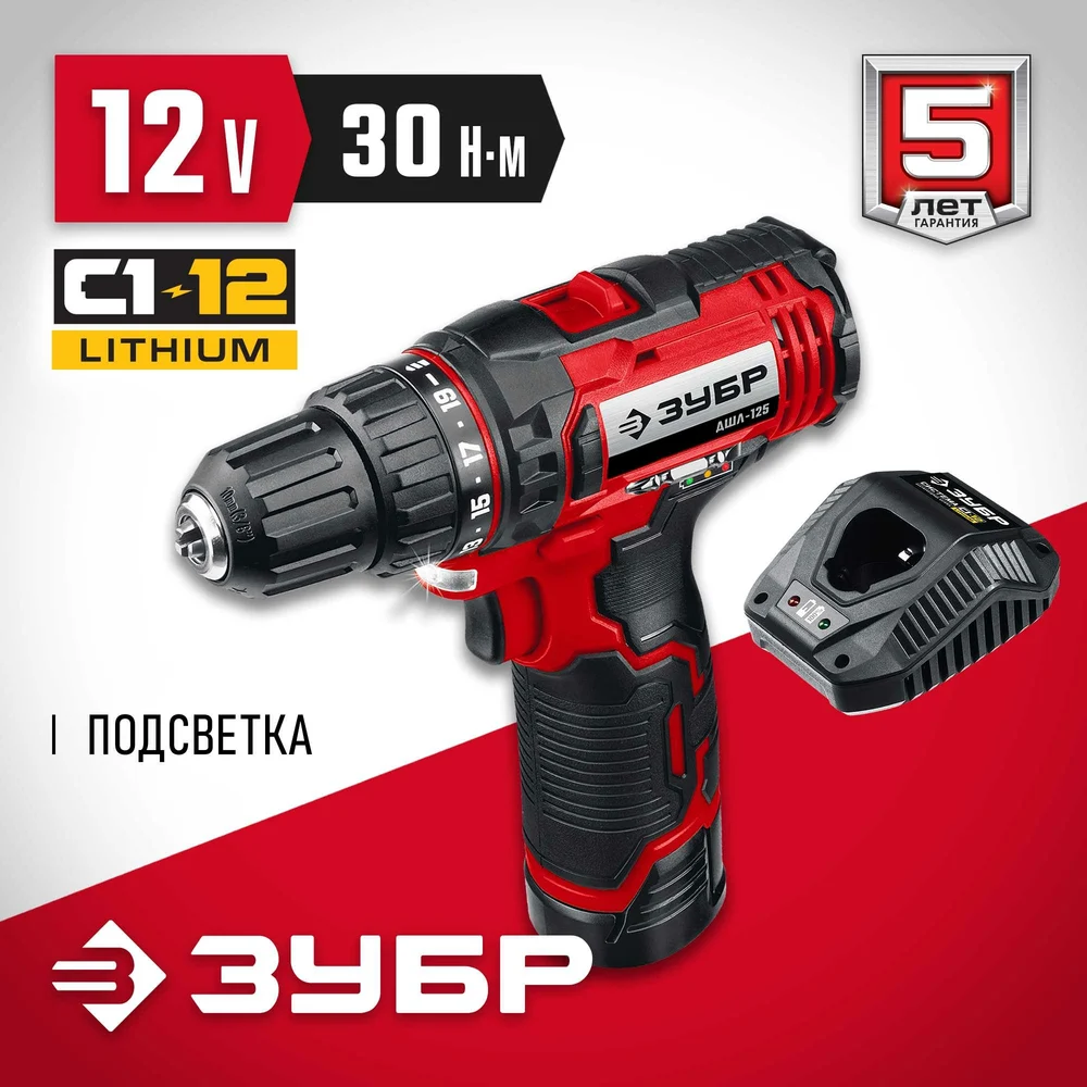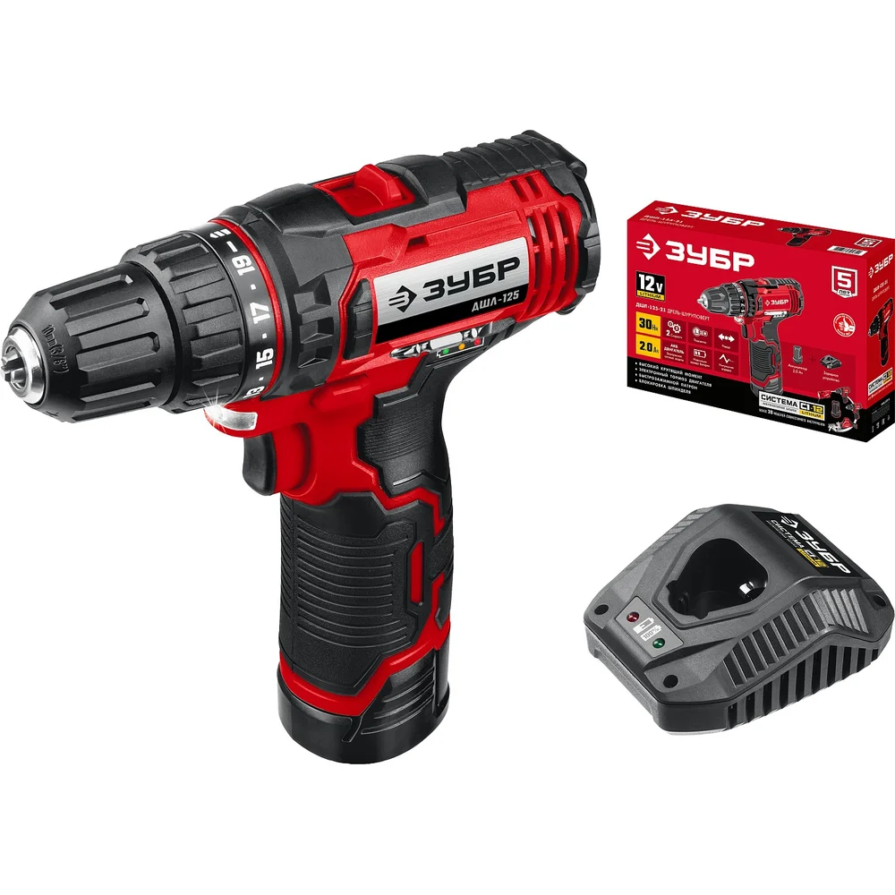 Купить Дрель-шуруповерт ЗУБР 12В, 1 АКБ 2Ач, в коробке ДШЛ-125-21 по лучшей цене с доставкой - интернет магазин №1 в России