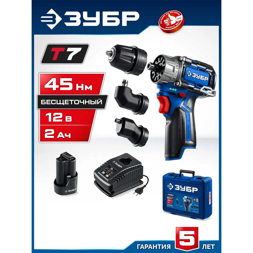 Купить Дрель-шуруповерт ЗУБР Профессионал Комби 12 В, 45 Н·м, 1 АКБ тип Т7 (2 А·ч), кейс DB-125-21 по лучшей цене с доставкой - интернет магазин №1 в России
