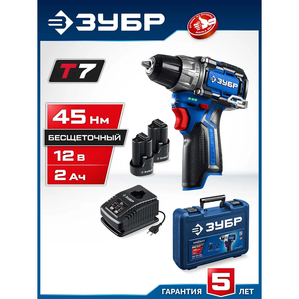 Купить Дрель-шуруповерт ЗУБР Профессионал компакт 12В, 45Нм, 2 аккумулятора, тип Т7, 2Ач, кейс DB-121-22 по лучшей цене с доставкой - интернет магазин №1 в России