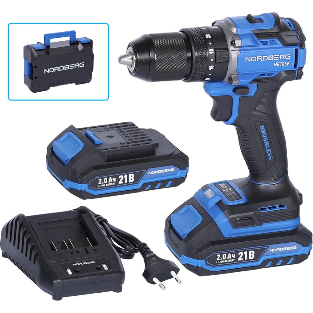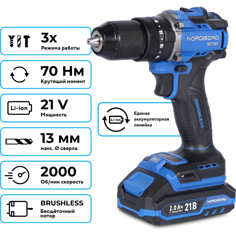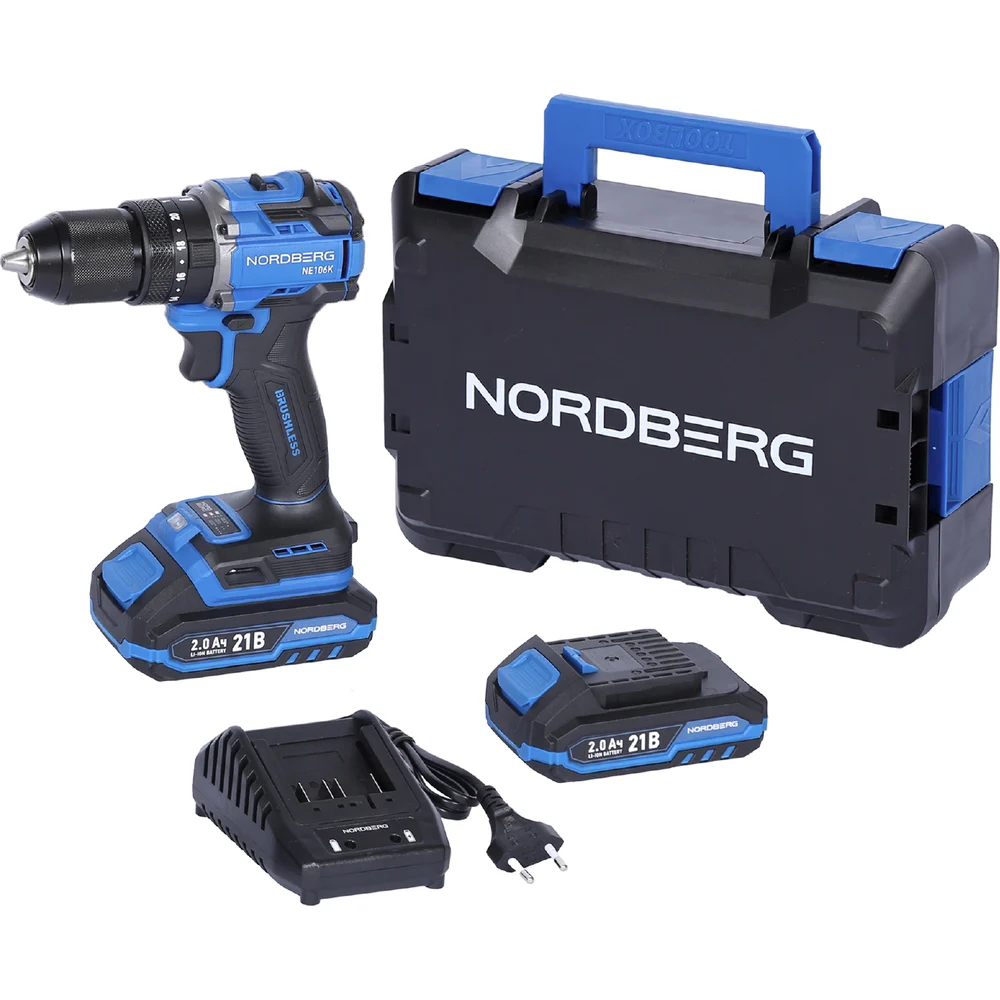 Купить Шуруповерт аккумуляторный NORDBERG макс.диам. сверла 13 мм, 21 В, 70 Нм с 2 аккумуляторами и зарядным уст-вом NE106K по лучшей цене с доставкой - интернет магазин №1 в России