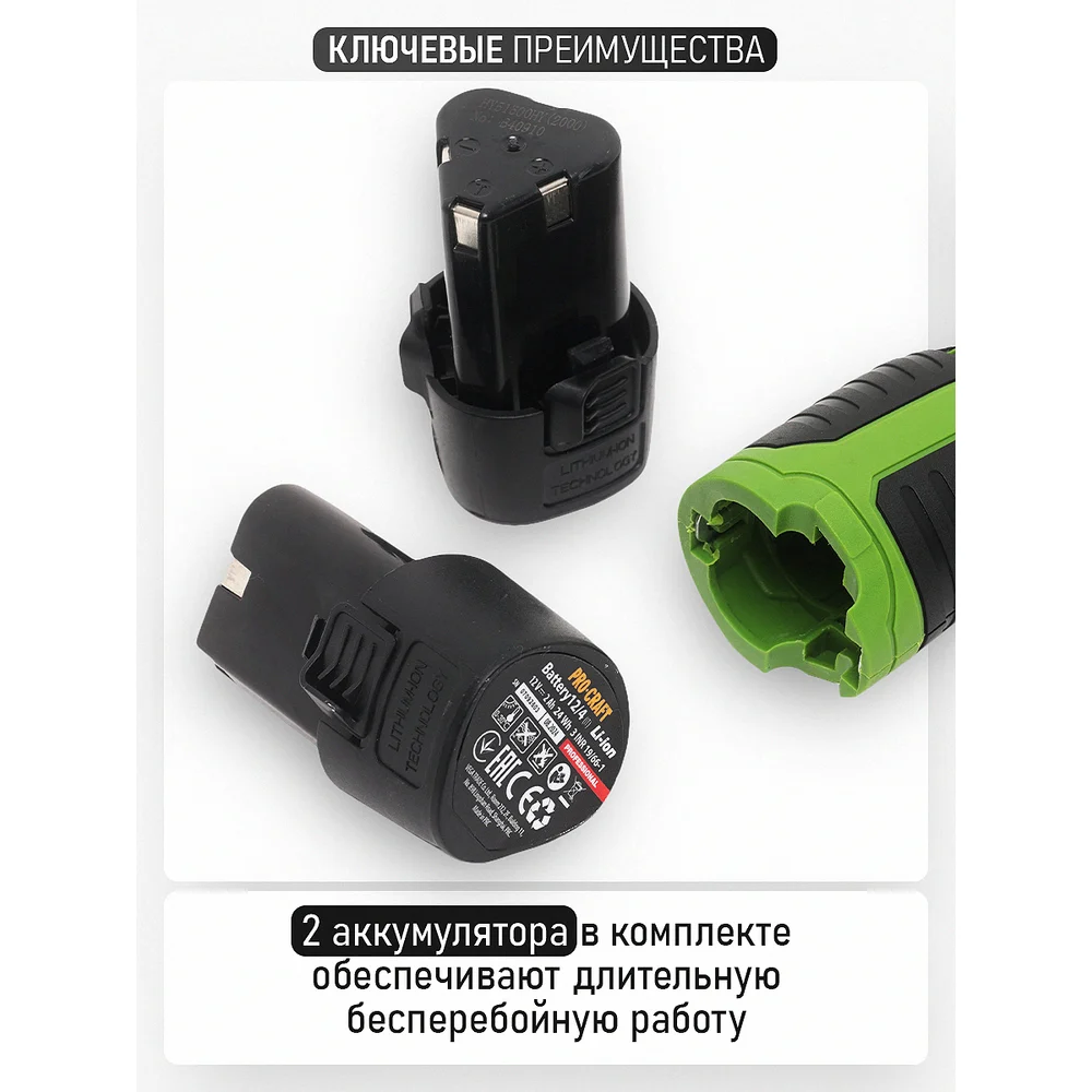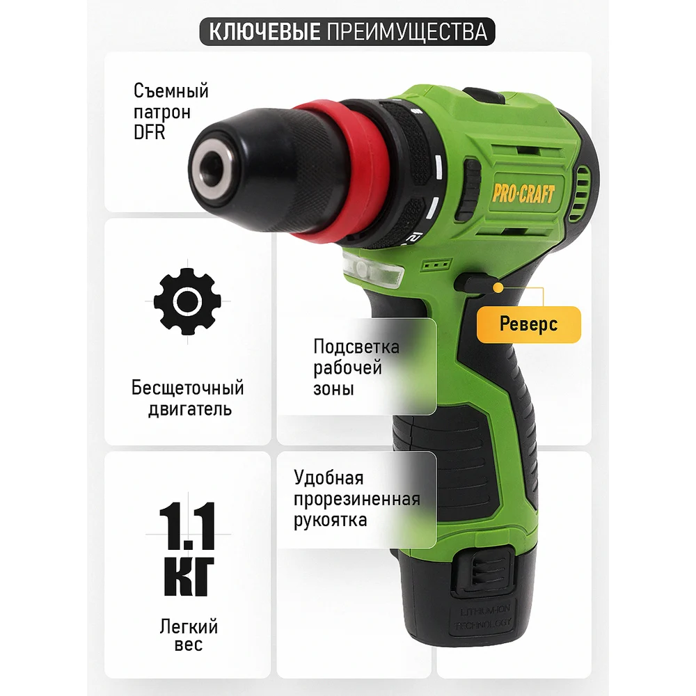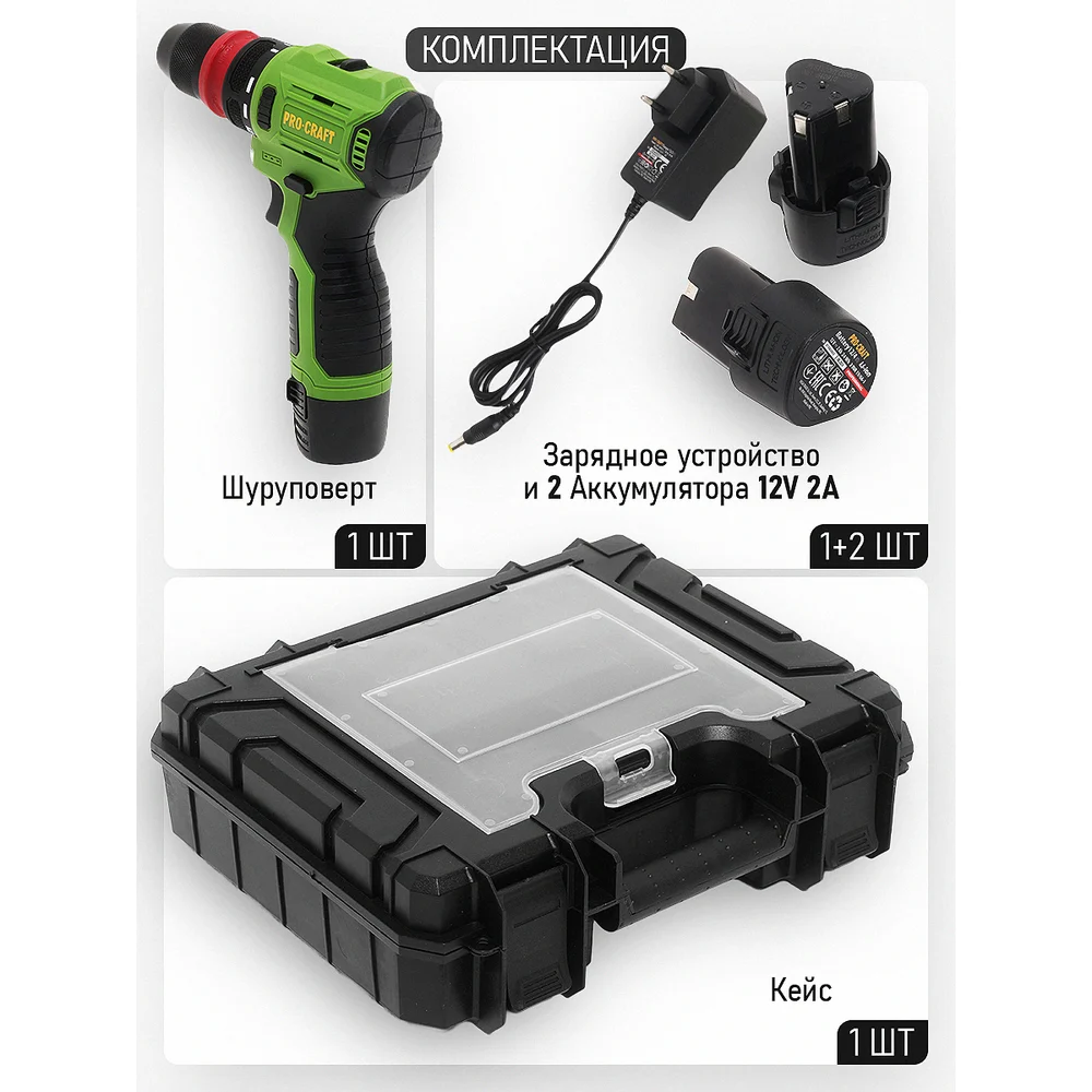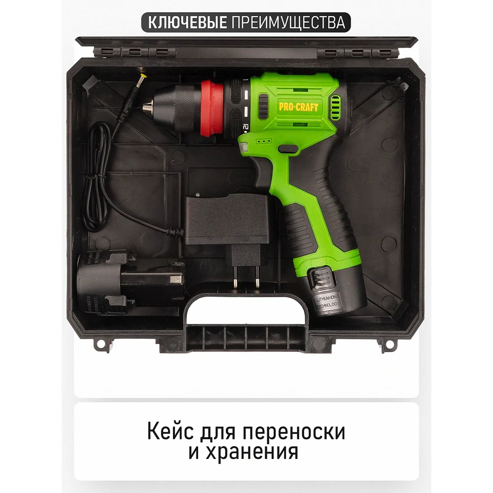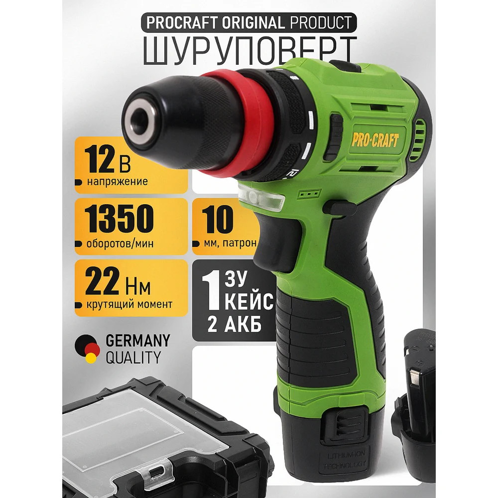 Купить Шуруповерт аккумуляторный PROCRAFT 12В 22Нм DFR(2 АКБ 2Ач+ЗУ+Кейс) DFR PA12PRODFR New по лучшей цене с доставкой - интернет магазин №1 в России