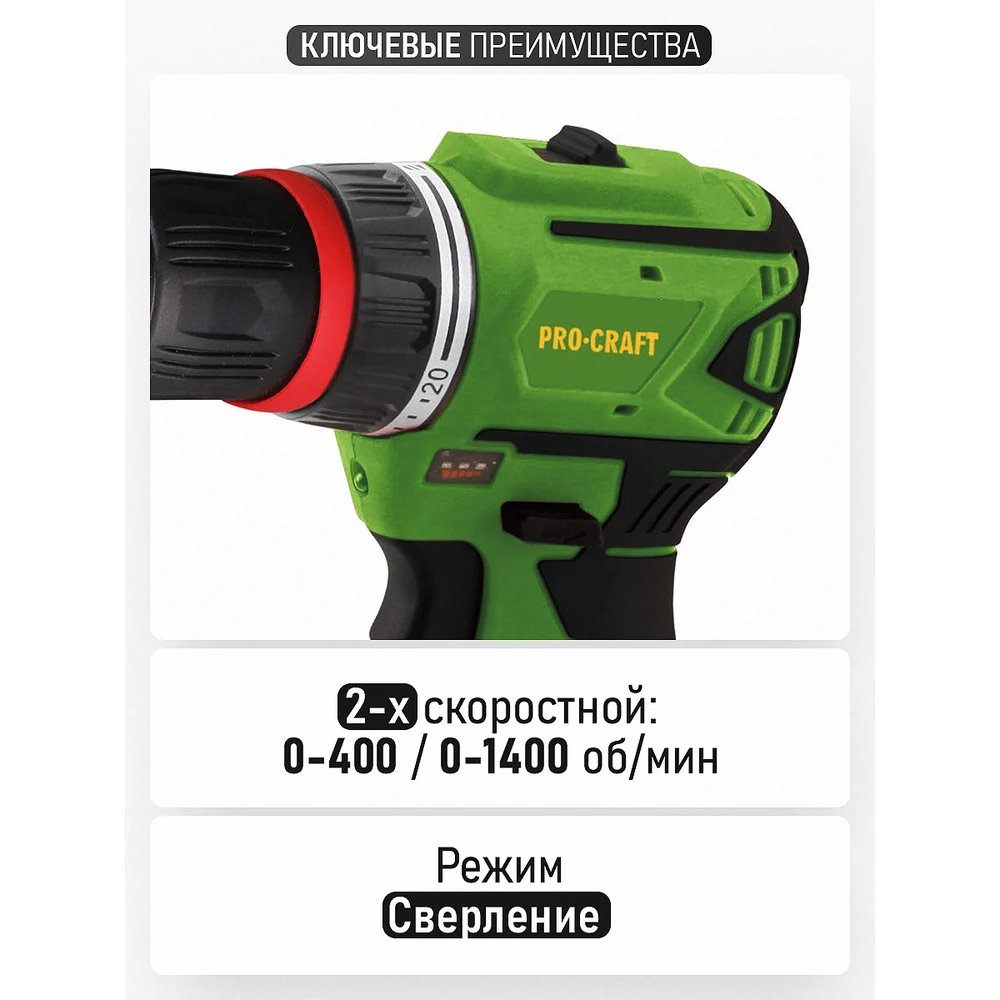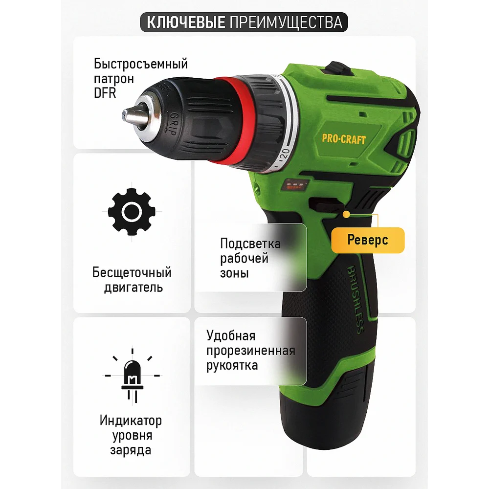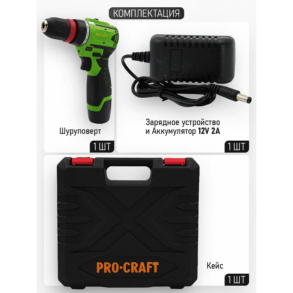 Купить Шуруповерт аккумуляторный PROCRAFT 12В 30Нм (АКБ 2Ач+ЗУ) PA12BL DFR по лучшей цене с доставкой - интернет магазин №1 в России