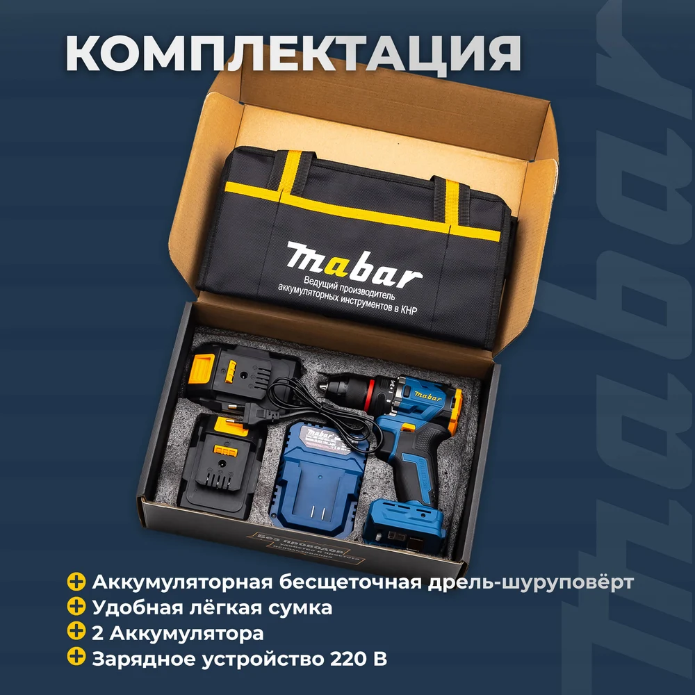 Купить Аккумуляторная бесщёточная MABAR Дрель-Шуруповёрт УДАРНАЯ, ( модели 5502-МК-2. 0АН) , 1*12 new 5502-МК-2.0АН по лучшей цене с доставкой - интернет магазин №1 в России
