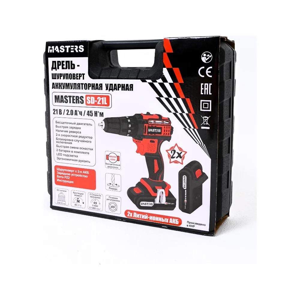 Купить Аккумуляторная дрель-шуруповерт MASTERS SD-21L (бесщеточная) 19916 по лучшей цене с доставкой - интернет магазин №1 в России