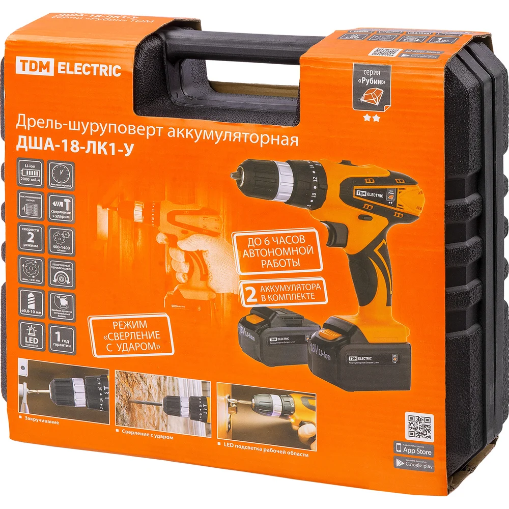 Купить Аккумуляторная дрель-шуруповерт TDM ELECTRIC ДША-18-ЛК1-У Рубин SQ1030-0205 по лучшей цене с доставкой - интернет магазин №1 в России