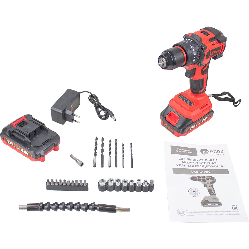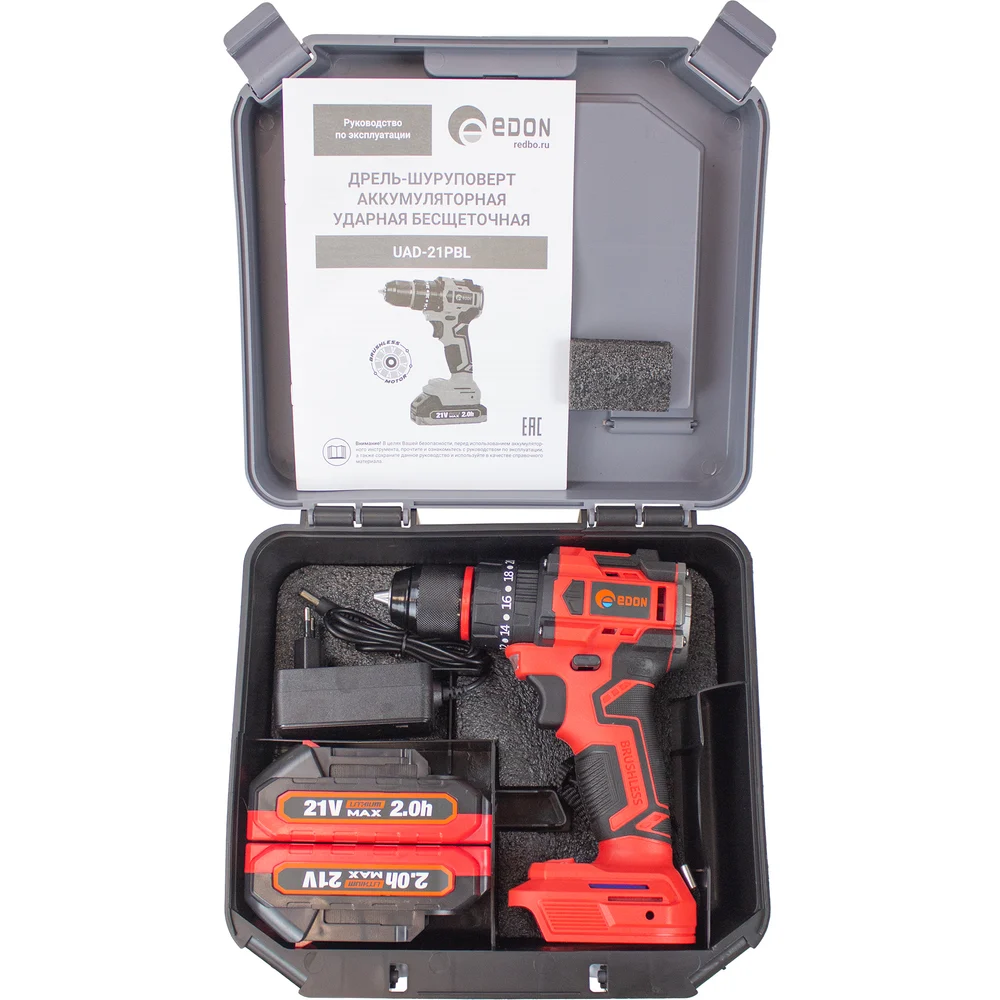 Купить Аккумуляторная ударная бесщеточная дрель-шуруповерт EDON UAD-21PBL 27519 по лучшей цене с доставкой - интернет магазин №1 в России