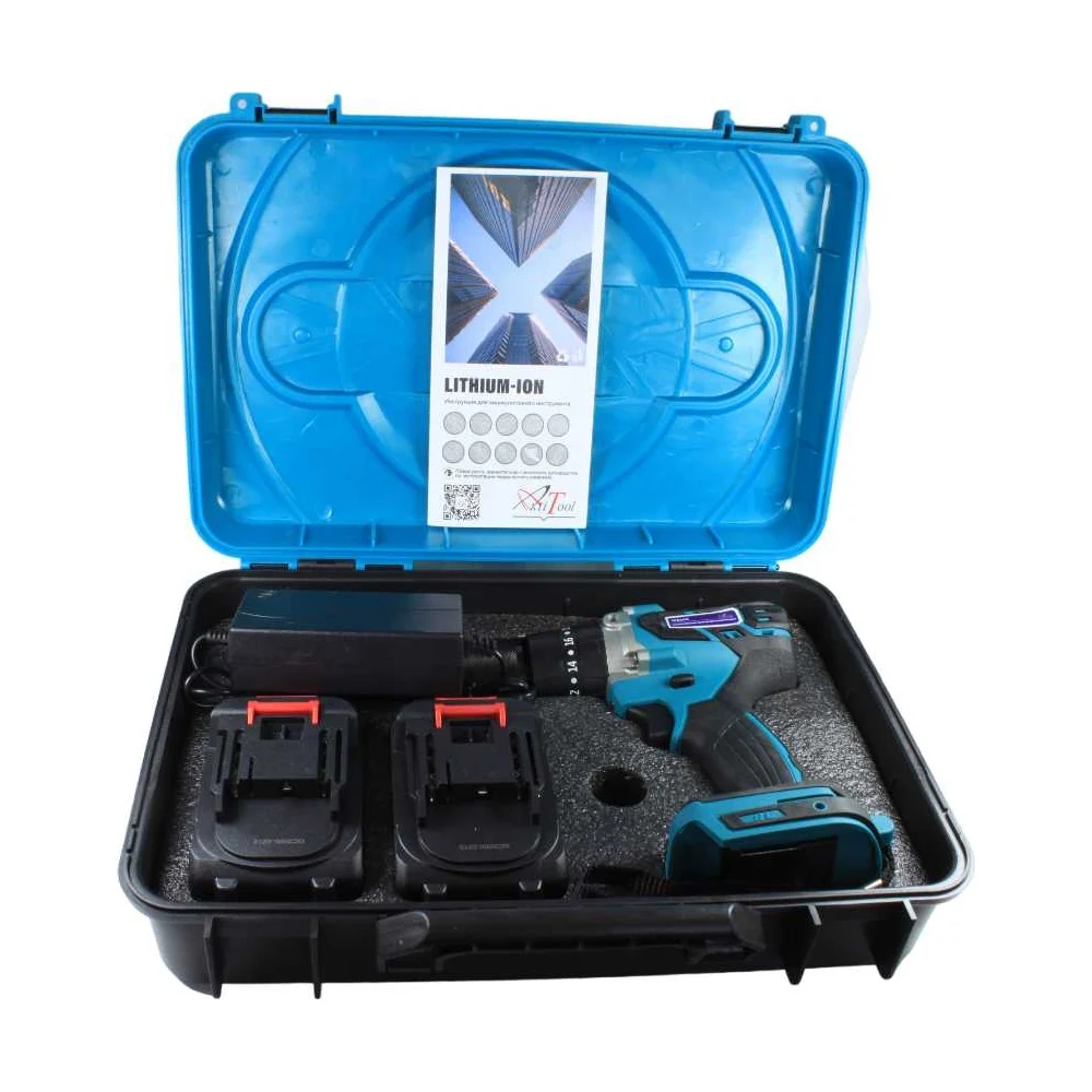 Аккумуляторная ударная дрель-шуруповерт AktiTool icd20g в кейсе 13 мм, 20 В, li-ion аккум. 4000 мАч, 2 шт 101212