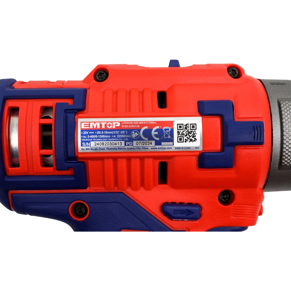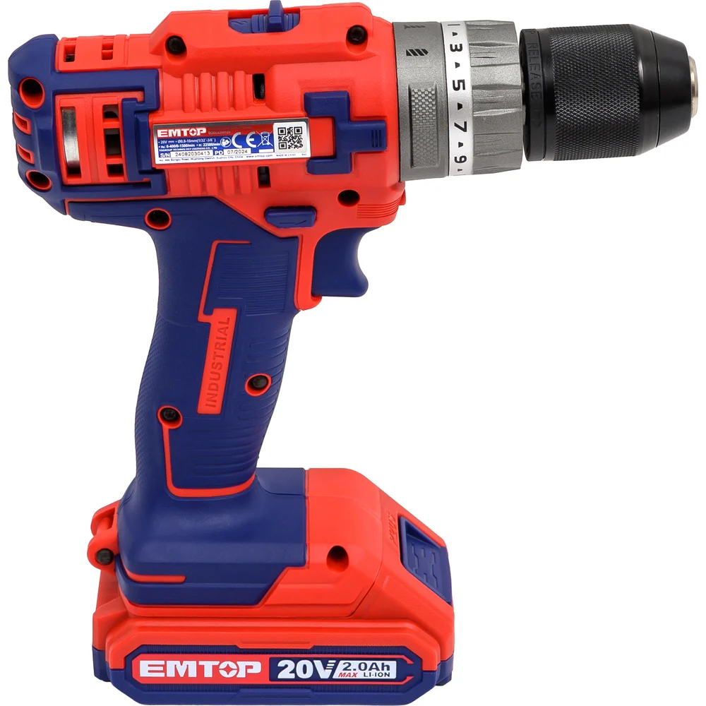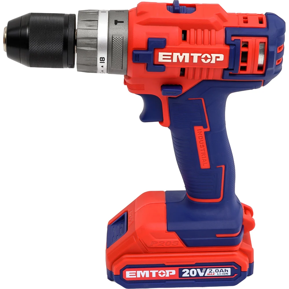 Аккумуляторная ударная дрель-шуруповерт emtop 20 В, скорость холостого хода: 0-400/0-1500 об/мин, максимальная частота ударов: 22500 об/мин ECIDL6200128