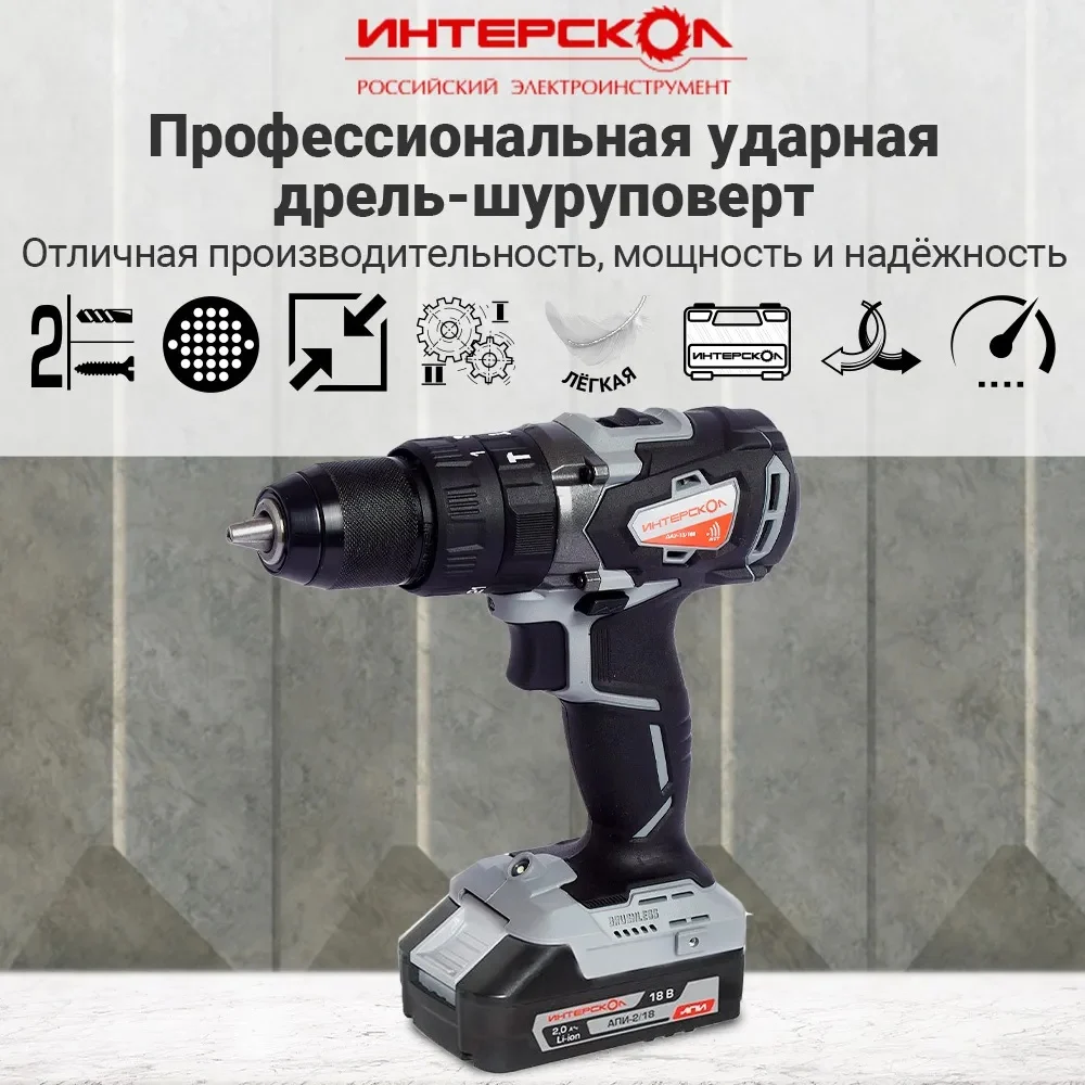 Купить Аккумуляторная ударная дрель-шуруповерт Интерскол ДАУ-13/18В 574.4.1.70 по лучшей цене с доставкой - интернет магазин №1 в России