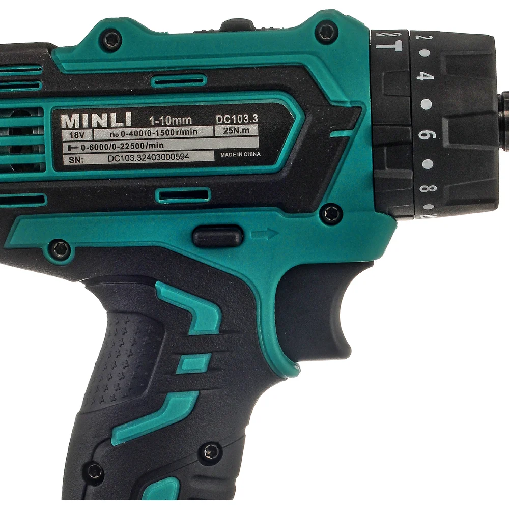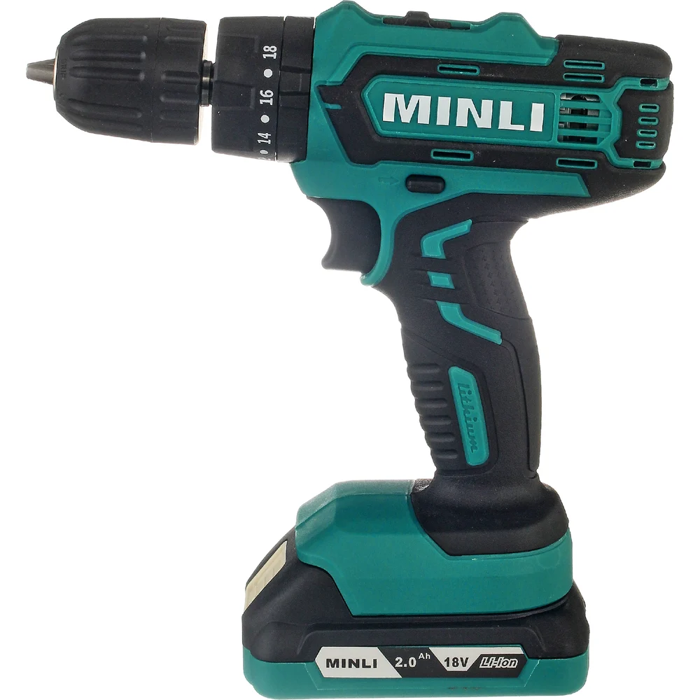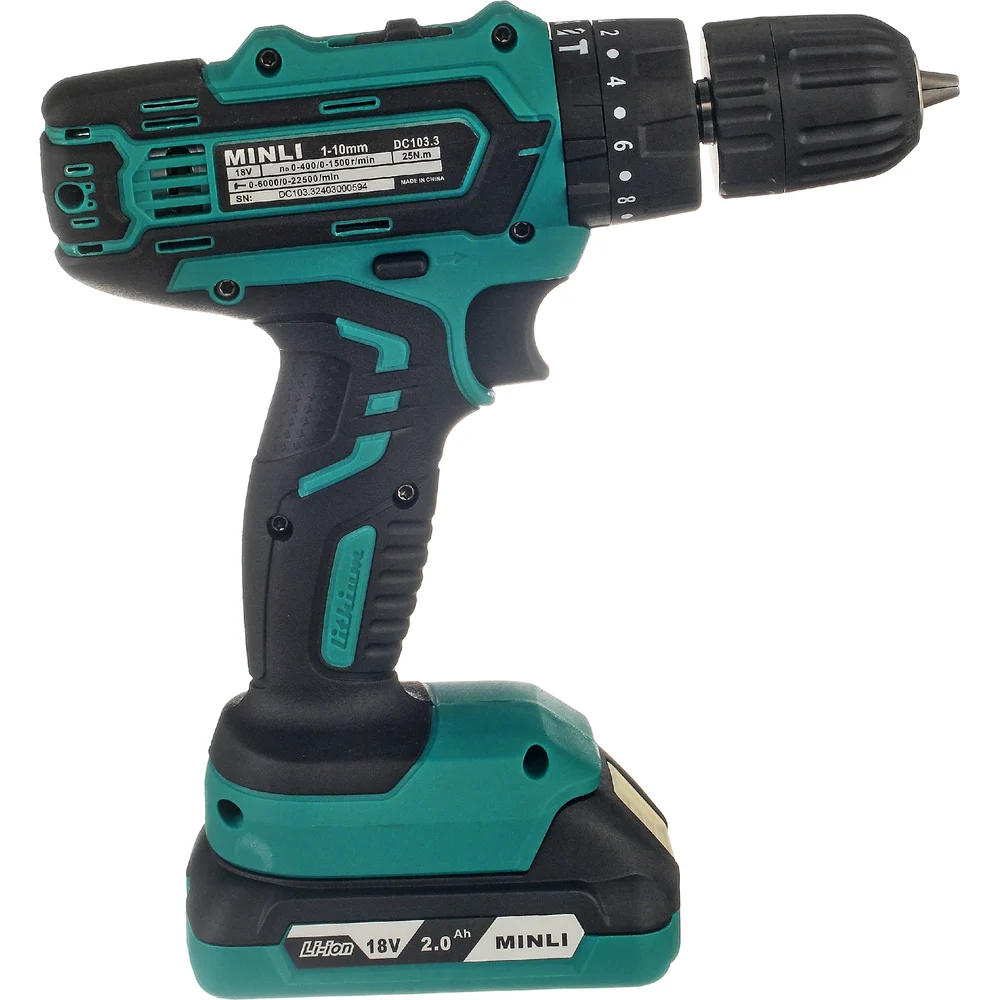 Аккумуляторная ударная дрель-шуруповерт MINLI 10mm 25N.m Li-ion 18Vx2 DC103.3-2.0A