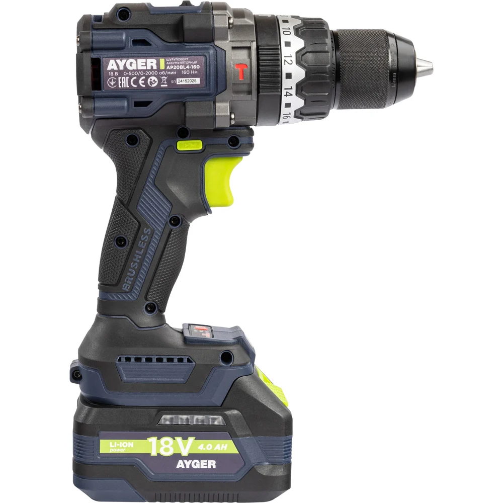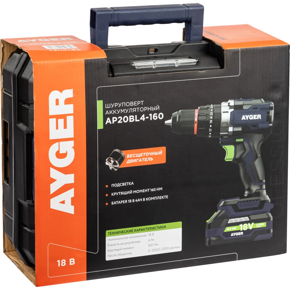 Купить Аккумуляторный бесщеточный ударный шуруповерт AYGER AP20BL4-160 по лучшей цене с доставкой - интернет магазин №1 в России