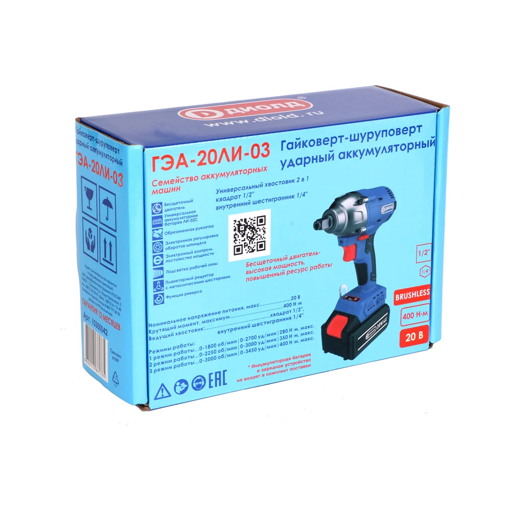 Купить Аккумуляторный ударный гайковерт-шуруповерт ДИОЛД Гэа-20 ли-03 10300042 по лучшей цене с доставкой - интернет магазин №1 в России