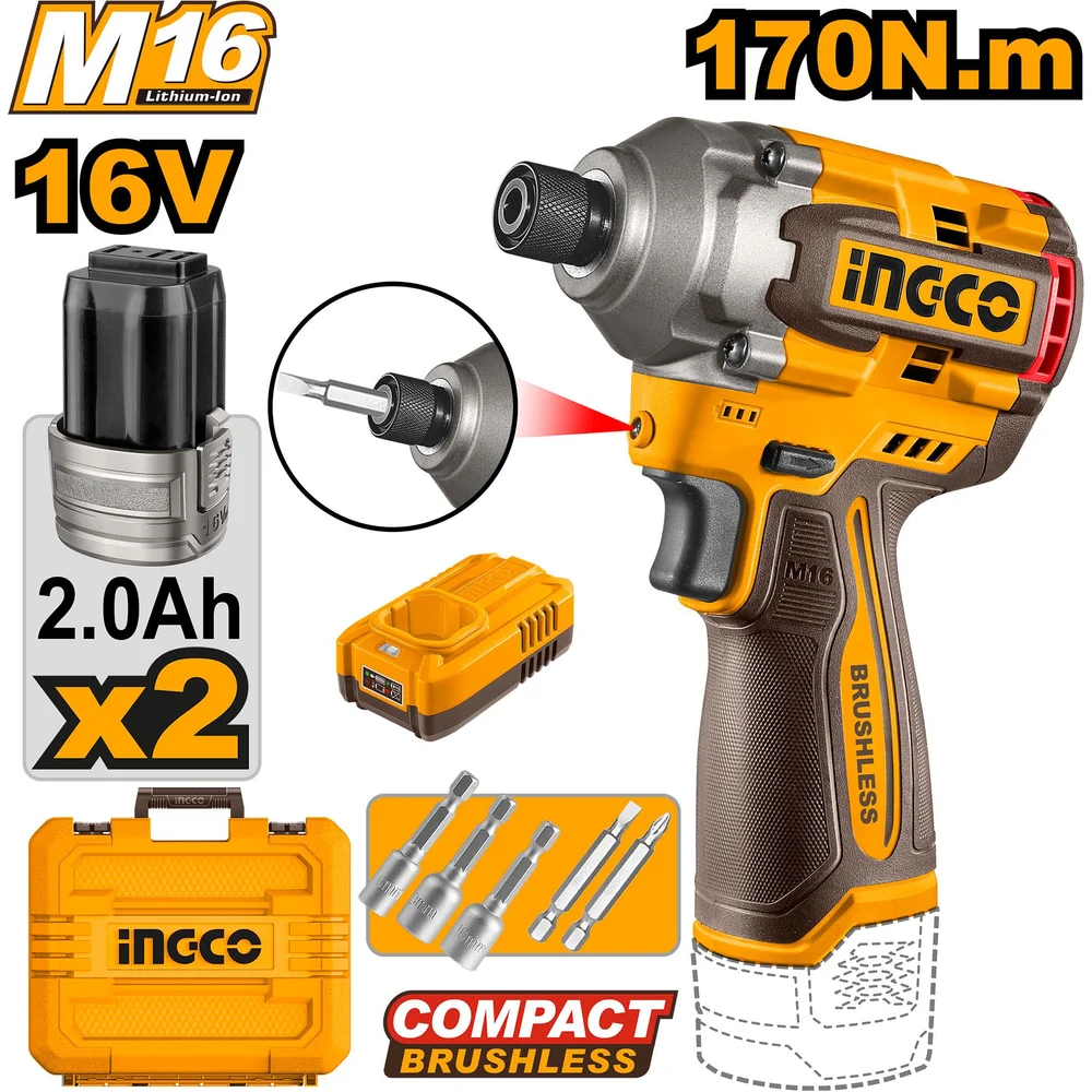 Аккумуляторный ударный шуруповерт INGCO 16В 170 Нм INDUSTRIAL CIRLI16178