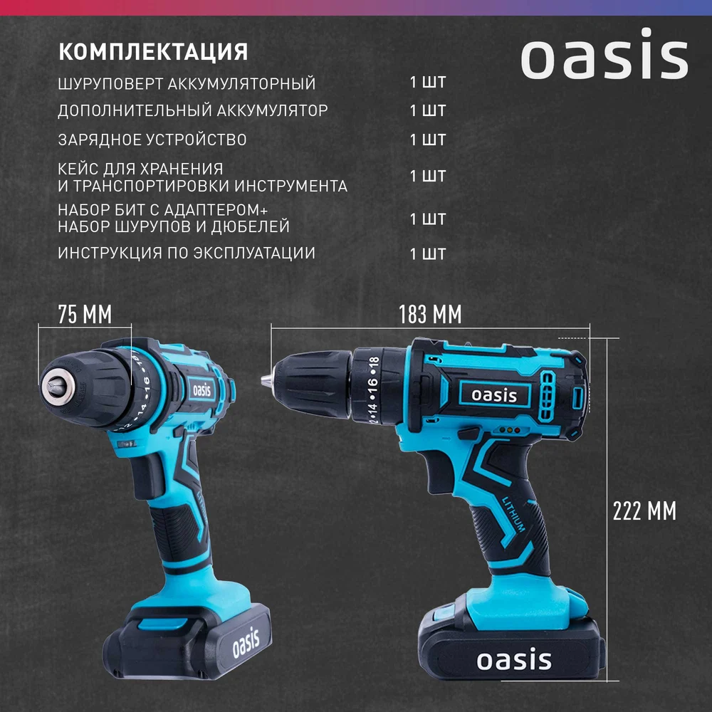 Купить Аккумуляторный ударный шуруповерт OASIS ASU-18S по лучшей цене с доставкой - интернет магазин №1 в России