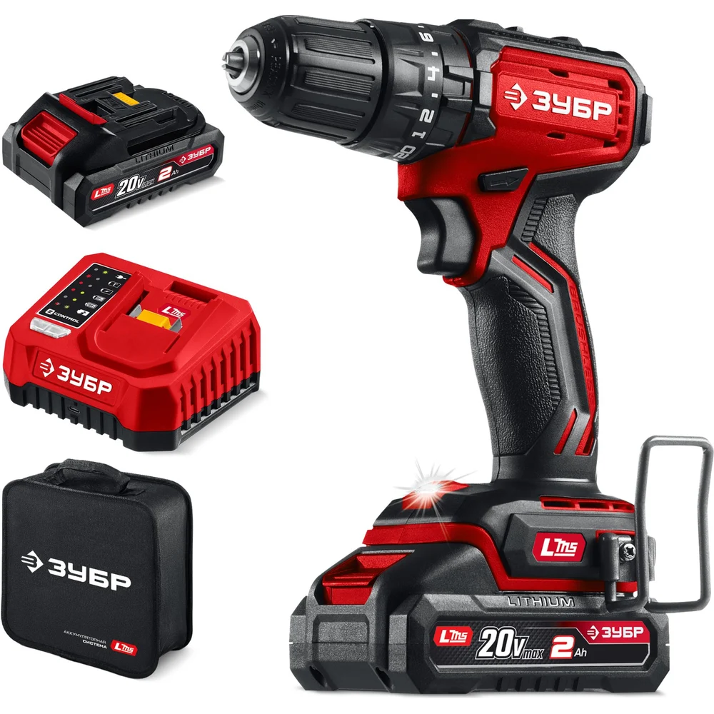 Купить Бесщеточная ударная дрель-шуруповерт ЗУБР 20 В, 45 Н·м, 2 АКБ LMS (2 А·ч) сумка ДБУ-45-22 по лучшей цене с доставкой - интернет магазин №1 в России