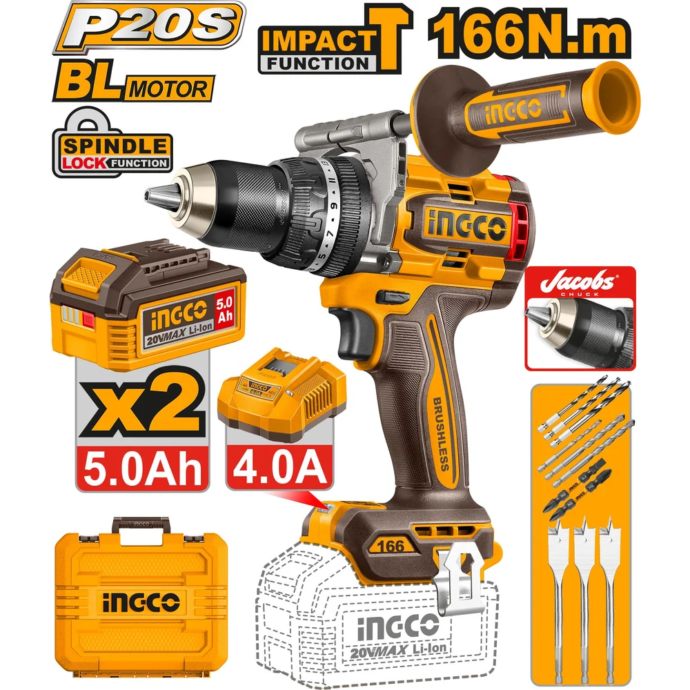 Купить Бесщеточный ударный шуруповерт INGCO 20В, 166 Нм, б/щ (4) INDUSTRIAL CIDLI201668 по лучшей цене с доставкой - интернет магазин №1 в России