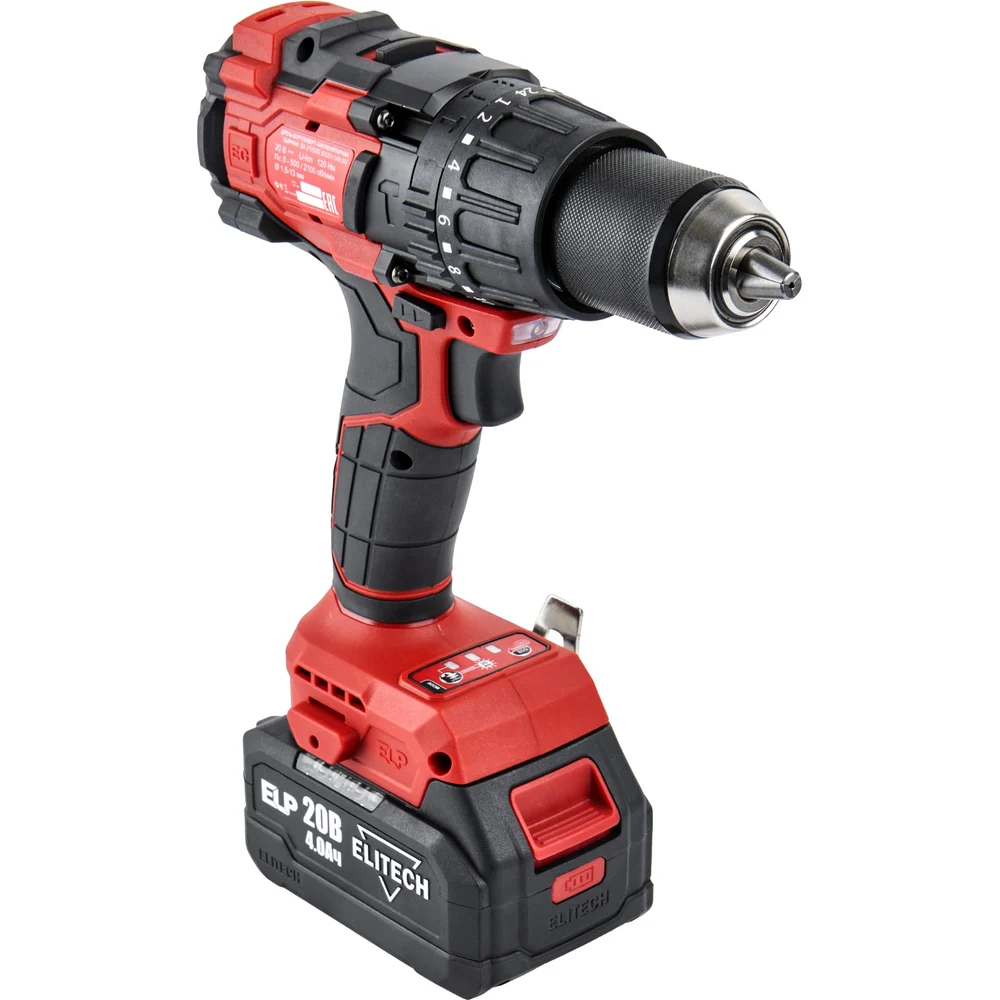 Купить Дрель аккумуляторная ударная Elitech ДА 21УБЛ2 (20В, 2*4Ач, 120Нм) 205683 по лучшей цене с доставкой - интернет магазин №1 в России