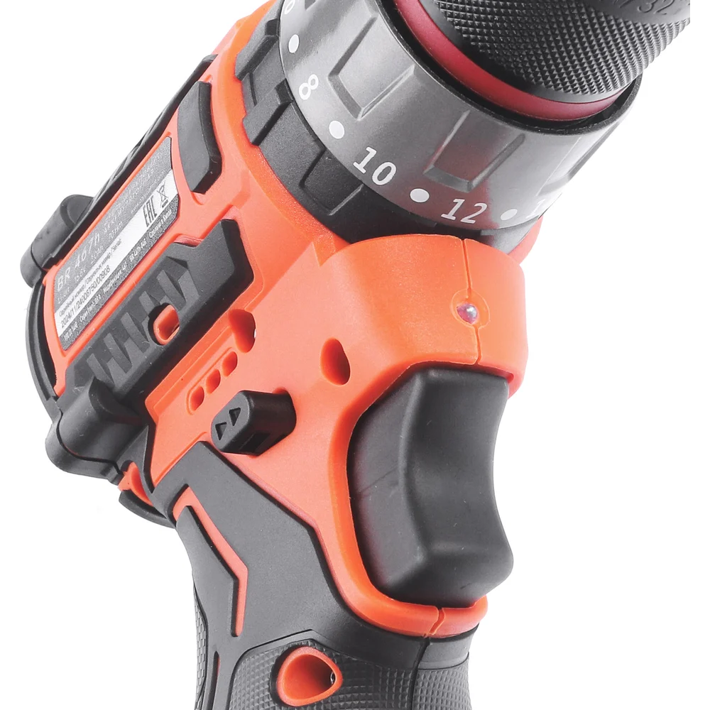 Комплектация Дрель-шуруповерт аккумуляторная; Аккумуляторная батарея: 2 шт; Зарядное устройство; Двухсторонняя бита; Пластиковый кейс; Инструкция