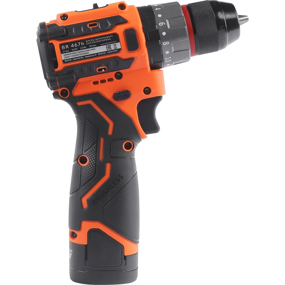 Купить Дрель-шуруповерт аккумуляторная PATRIOT BR 467h BL, 2 АКБ Li-Ion, 16.8 В, 2 Ач, 70 Нм удар, 2 скорости, кейс, бесщеточный ЭД 180201468 по лучшей цене с доставкой - интернет магазин №1 в России