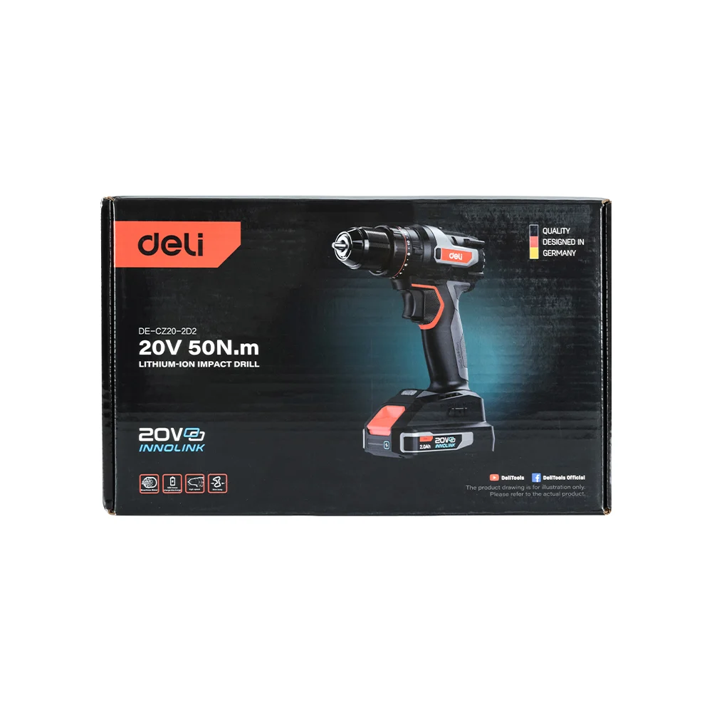 Купить Дрель-шуруповерт аккумуляторная ударная DELI DE-CZ20-2D2 2 акб, 20В х 2Ач, ЗУ, 10мм, 50Нм, сумка 164330 по лучшей цене с доставкой - интернет магазин №1 в России