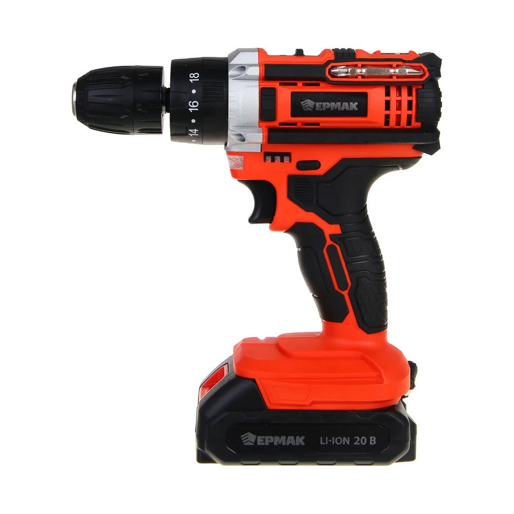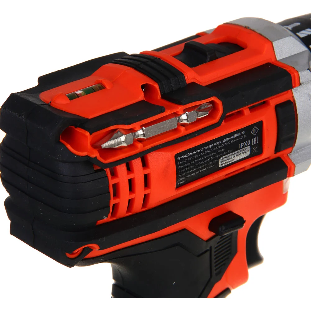 Дрель-шуруповерт аккумуляторный ударный ЕРМАК ДША-20, 20В, 2Ач, 0-400-1500 об.мин, 40 нм 691-046