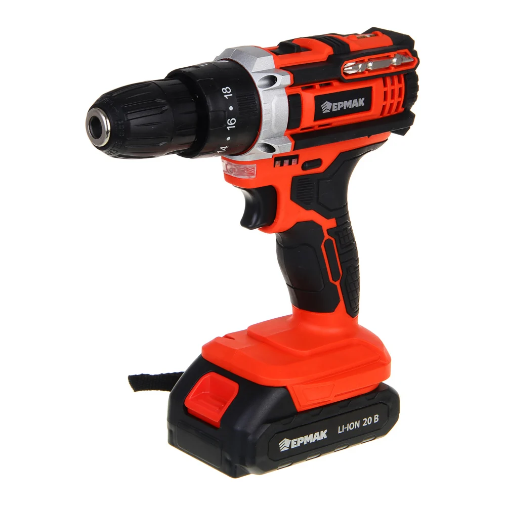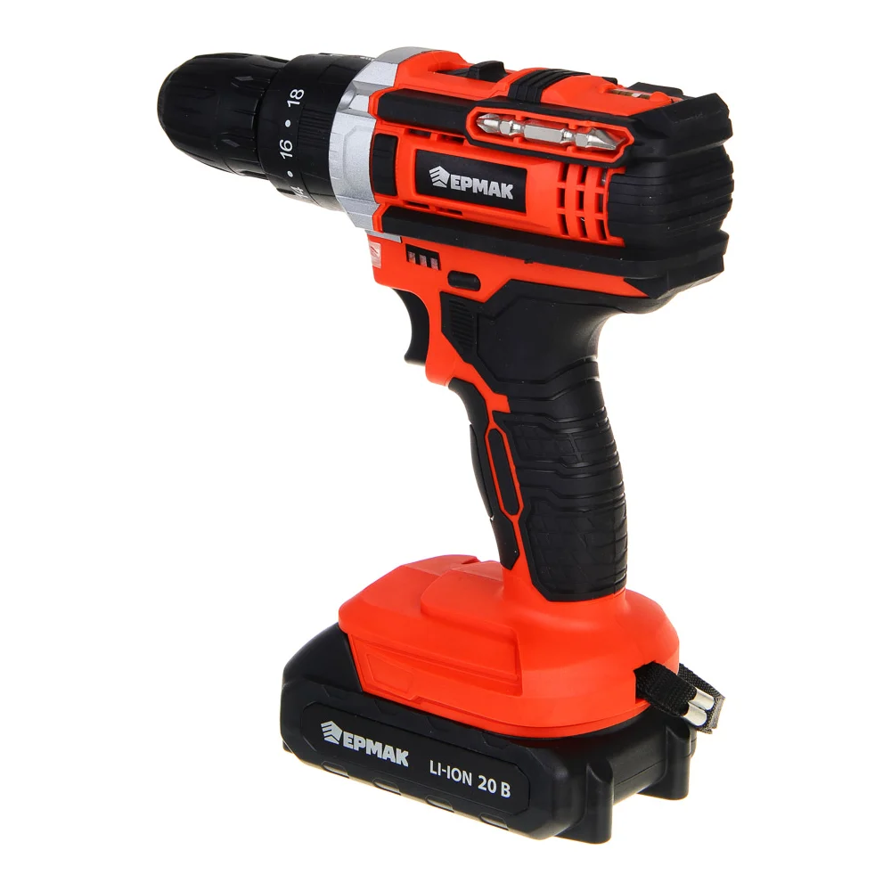 Купить Дрель-шуруповерт аккумуляторный ударный ЕРМАК ДША-20, 20В, 2Ач, 0-400-1500 об.мин, 40 нм 691-046 по лучшей цене с доставкой - интернет магазин №1 в России