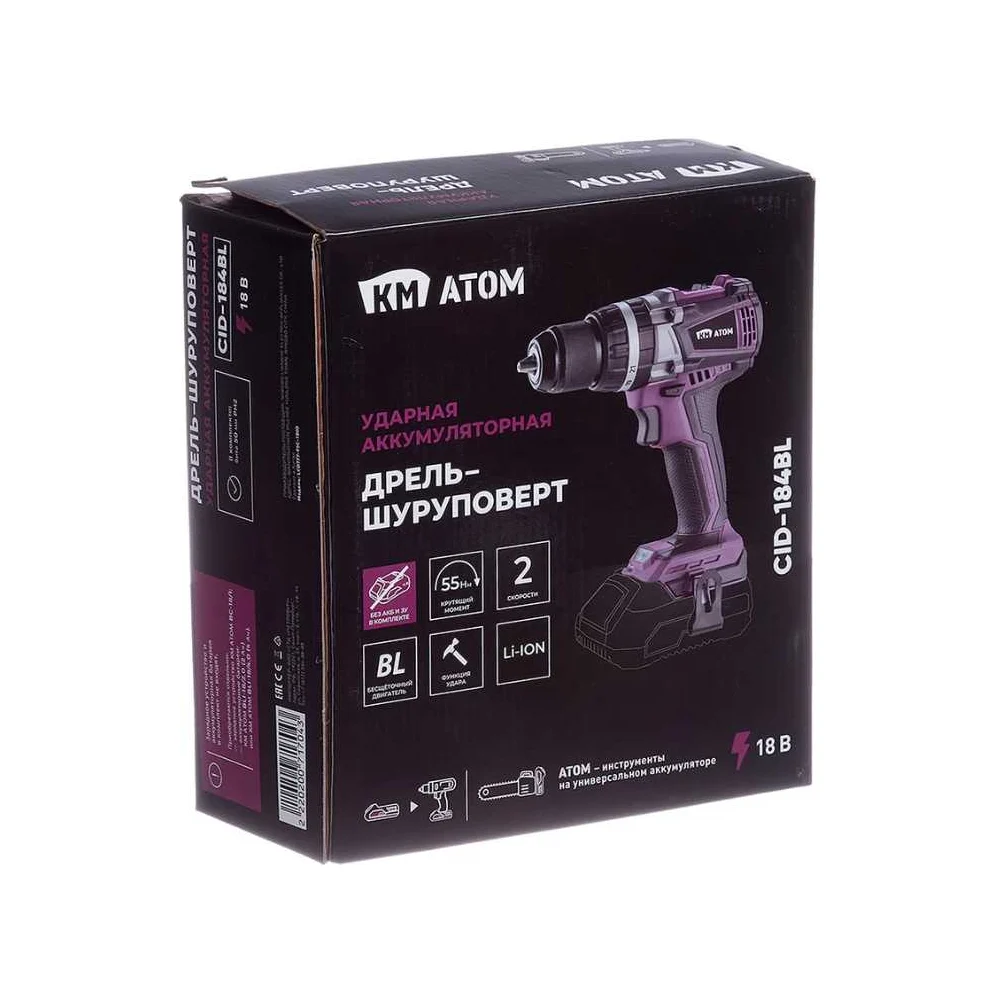 Купить Дрель-шуруповерт ударная аккумуляторная КМ АТОМ 18 В без АКБ и ЗУ CID-184BL по лучшей цене с доставкой - интернет магазин №1 в России