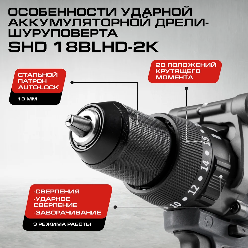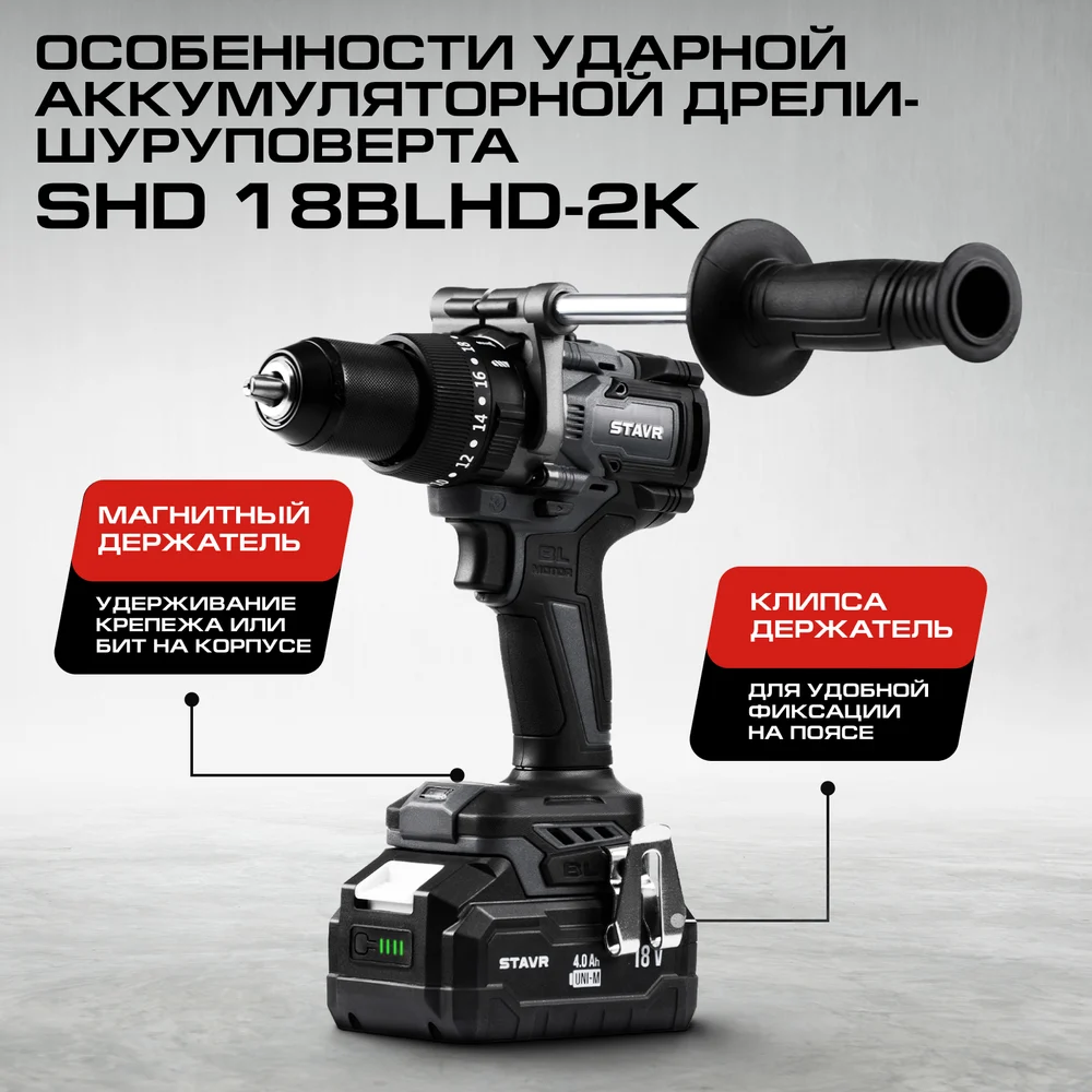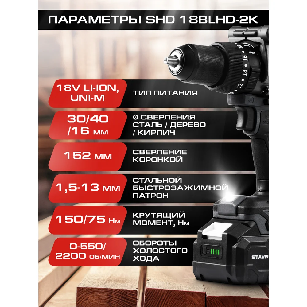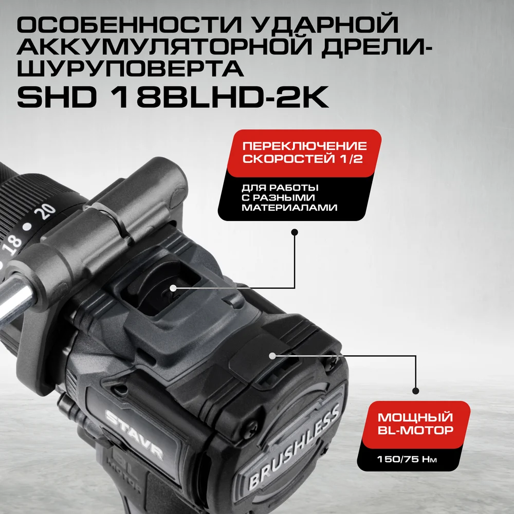Купить Дрель-шуруповерт ударная аккумуляторная Ставр 150Нм, BL, 18V UNI-M, Stavr SHD 18BLHD-2K, БЗП 9020100453 по лучшей цене с доставкой - интернет магазин №1 в России