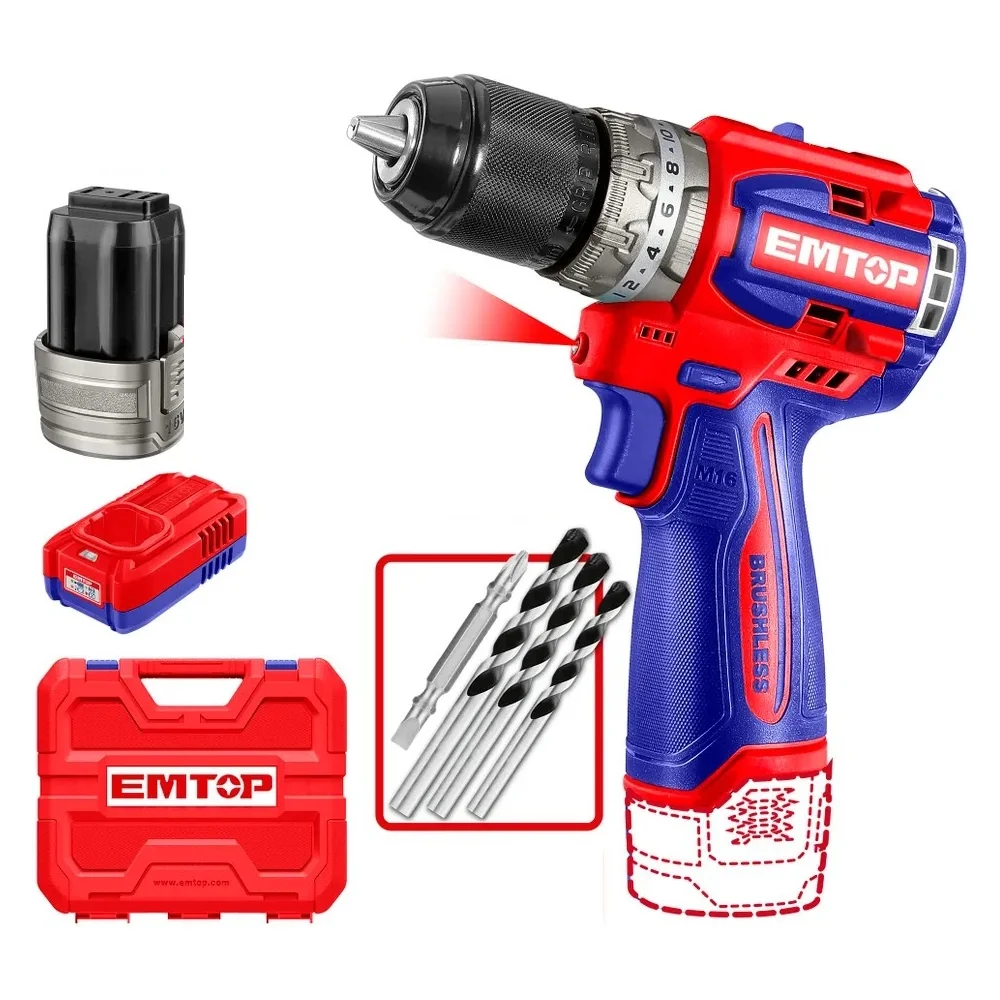 Купить Дрель ударная бесщеточная аккумуляторная EMTOP ECIDL16682 по лучшей цене с доставкой - интернет магазин №1 в России