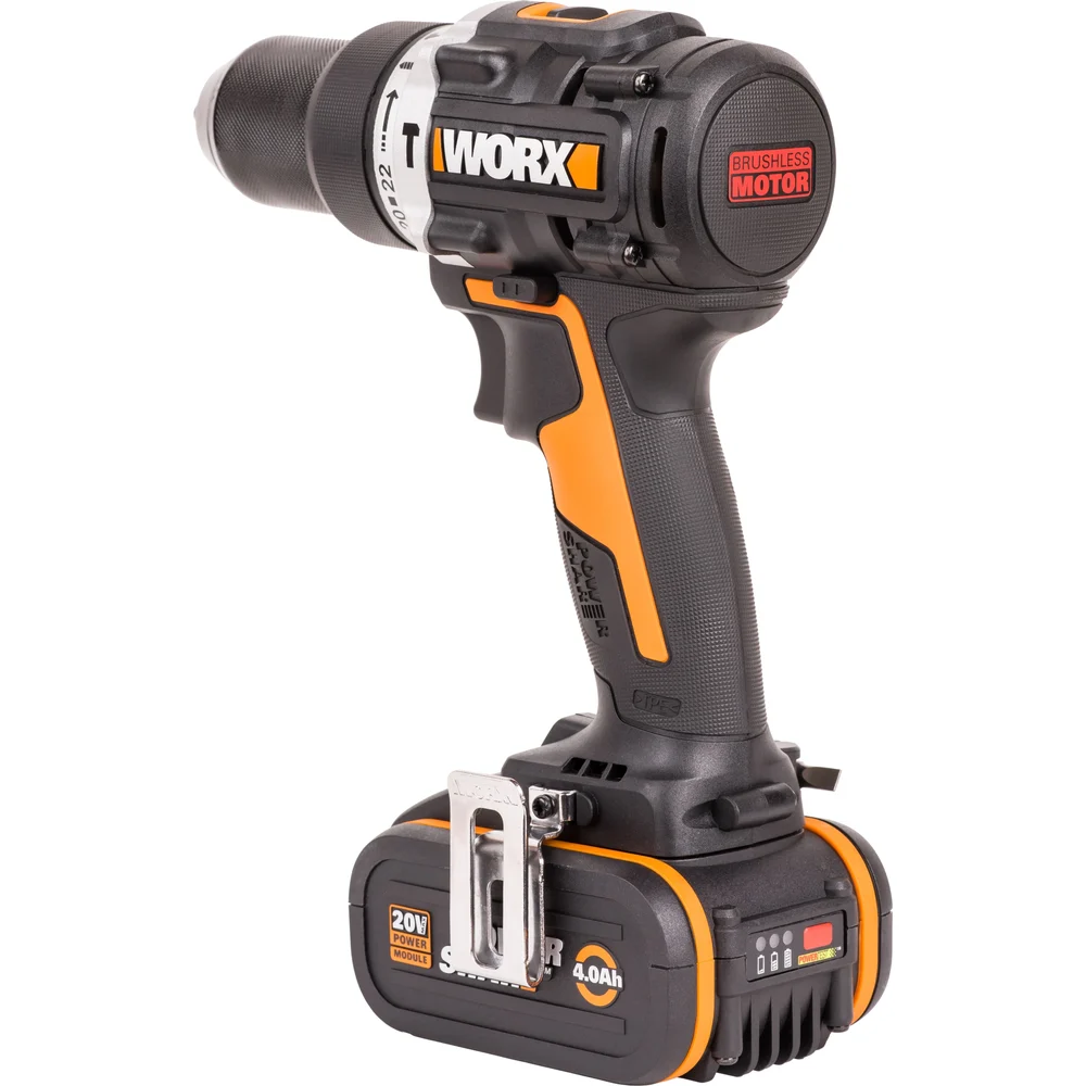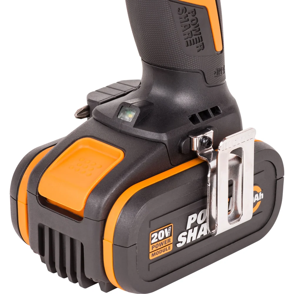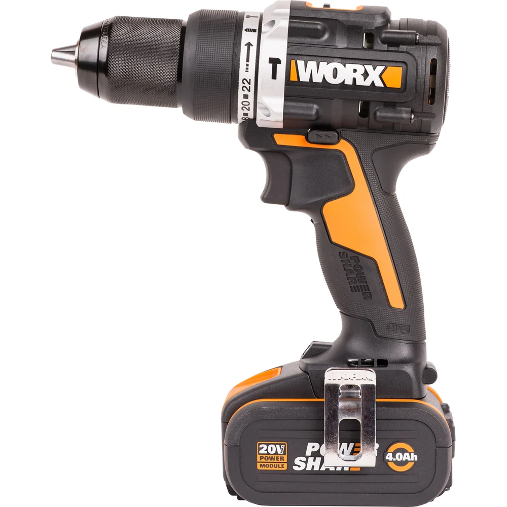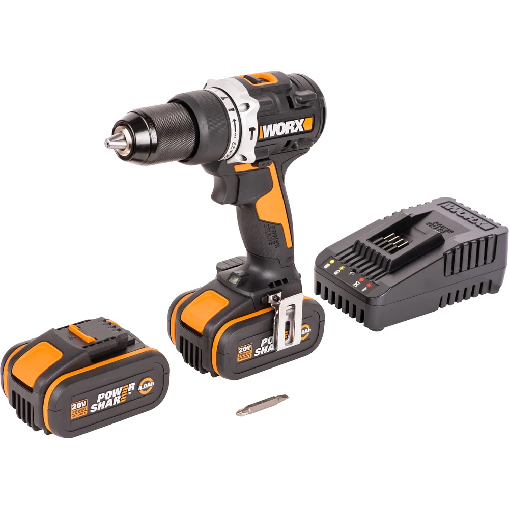 Купить Ударная аккумуляторная дрель-шуруповерт WORX 60 Нм, 20 В, бесщеточная, 4 Ач x 2, ЗУ 2 А, кейс WX352.1 по лучшей цене с доставкой - интернет магазин №1 в России