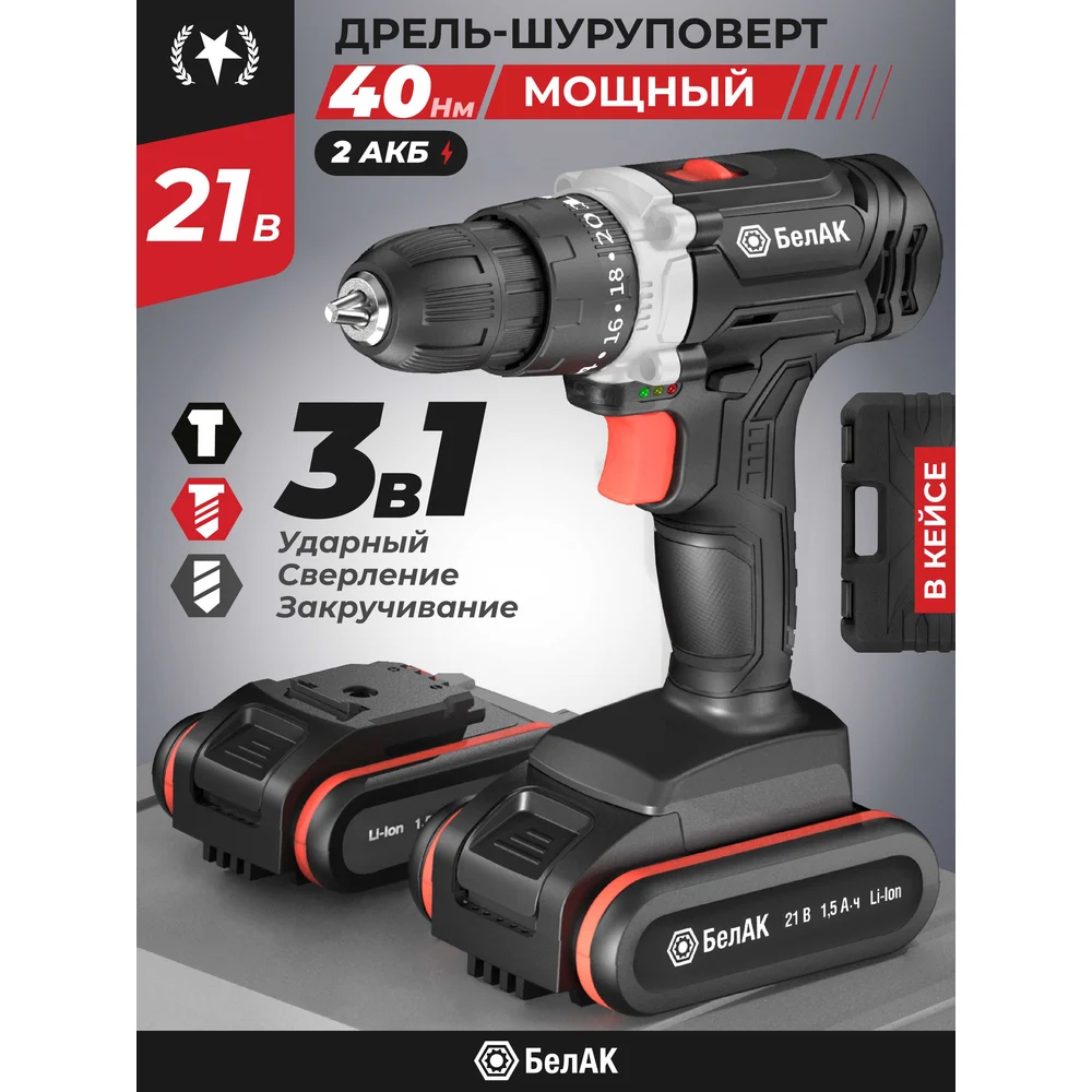 Купить Ударная дрель-шуруповерт БелАК щеточная, 21V 40Hm, в кейсе, 2 АКБ БАК.53313 по лучшей цене с доставкой - интернет магазин №1 в России