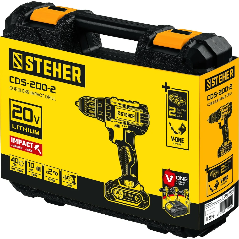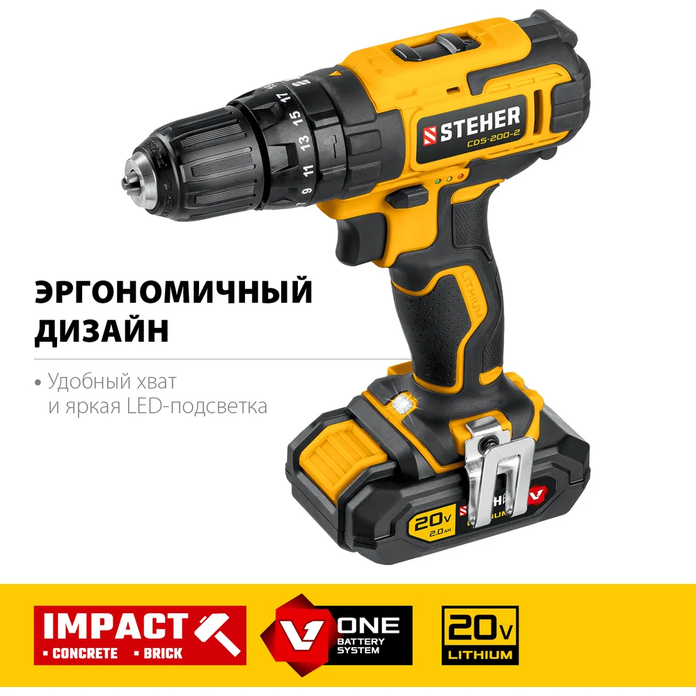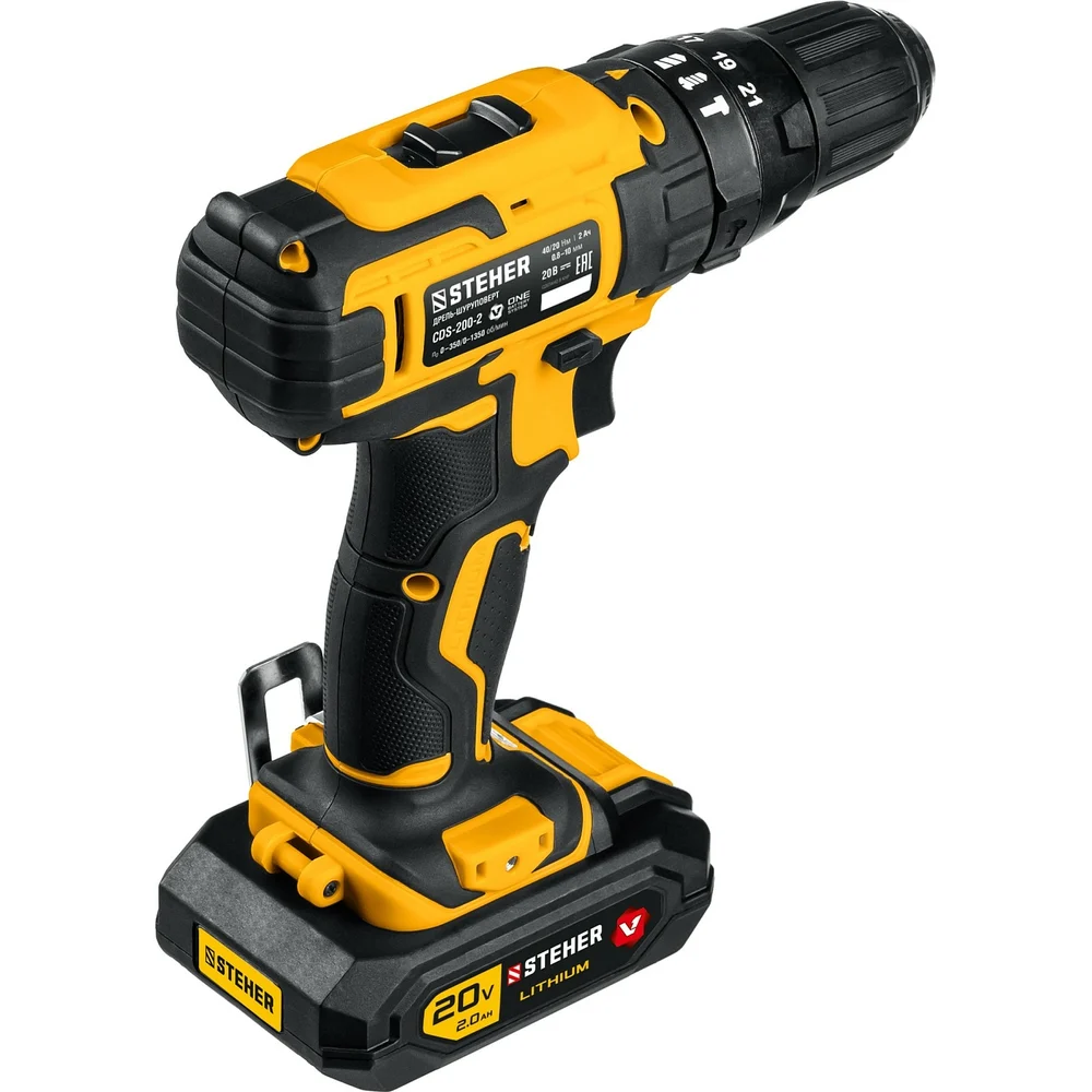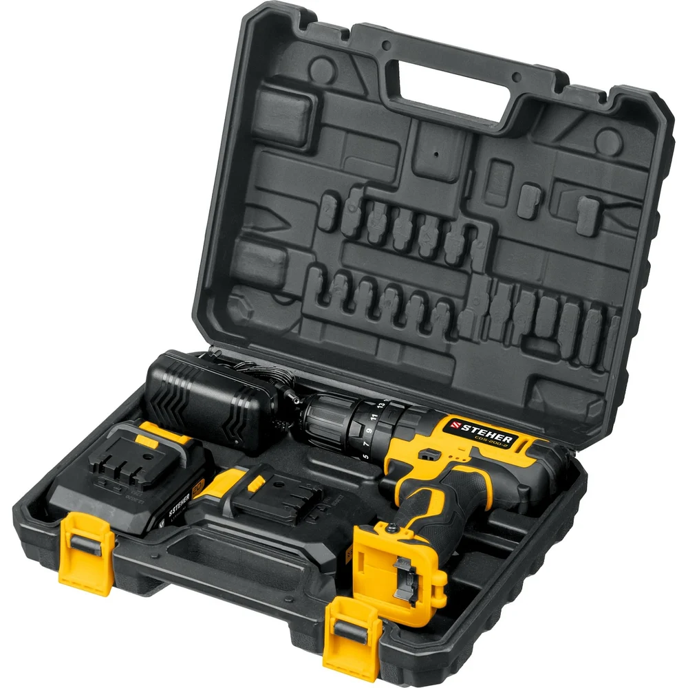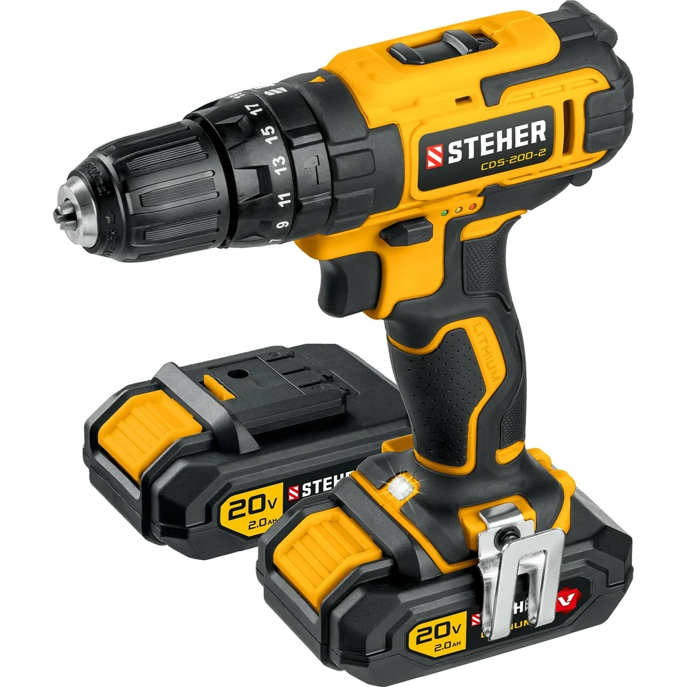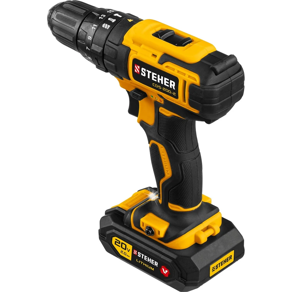 Ударная дрель-шуруповерт STEHER 20В, 2 АКБ 2Ач CDS-200-2